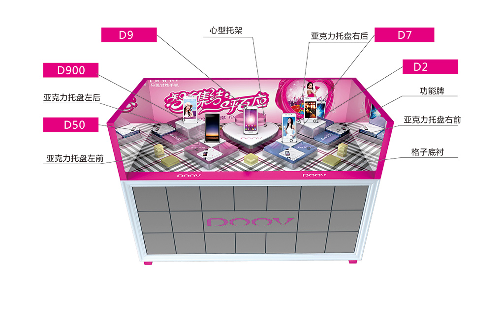 2012年初受深圳朵唯科技有限公司的委托,青成(前身于武設(shè)計(jì))開始了對(duì)DOOV朵唯全國終端形象進(jìn)行品牌全面升級(jí)改造設(shè)計(jì),整個(gè)新形象開發(fā)到全國終端上市為期八個(gè)月。我們從朵唯女性品牌手機(jī)定位分析、到專柜、專賣店設(shè)計(jì)、手機(jī)空間陳列等系列開發(fā)設(shè)計(jì)工作,新品牌形象設(shè)計(jì)工作成果得到何董事長與市場(chǎng)業(yè)界一致好評(píng)。