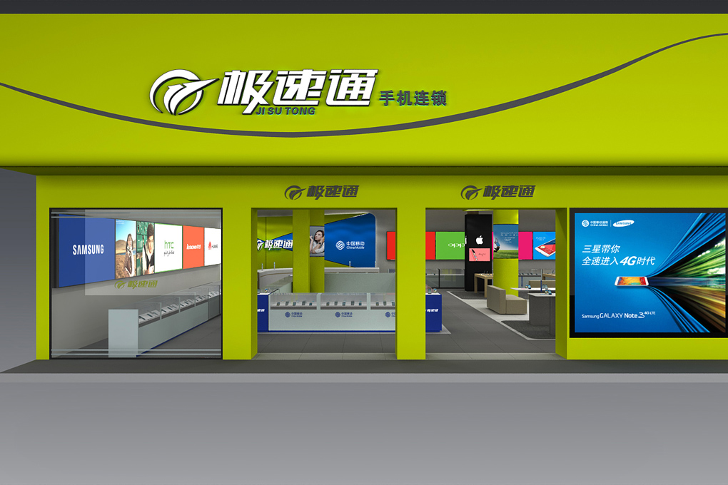 湖南JISUTONG極速通是一家集中國(guó)移動(dòng)通信與手機(jī)品牌銷售為一體的品牌店面。青成設(shè)計(jì)師根據(jù)客戶需求、市場(chǎng)定位、品牌策略與實(shí)地周邊環(huán)境考察,設(shè)計(jì)出符合當(dāng)代年輕人“簡(jiǎn)潔、精致”審美驅(qū)勢(shì)的通信手機(jī)店面形象。