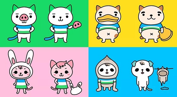 這次全家便利店的吉祥物,是四個(gè)乍一眼看上去像是四個(gè)不同物種,但其實(shí)都是喵星人,帶著豬鼻子嗅覺(jué)超常的BB老大,裝上了鴨嘴的大胃王Food小寶,戴著長(zhǎng)兔耳喜歡八卦的聆妹妹,穿著樹(shù)懶裝的超慢速IT狂人阿速。