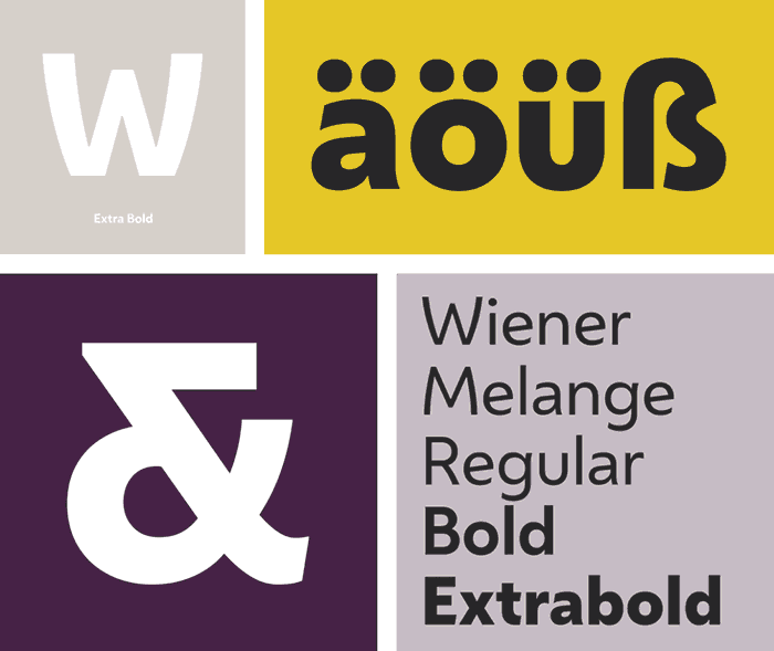 與國際字體設(shè)計師Dalton,我們委托了定制字體Melange。字體的靈感來自標志性盾牌的弧線,并以維也納著名的咖啡命名,從分離派的文字到歷史悠久的客棧中的人物,都汲取了這座城市的文化資產(chǎn)。