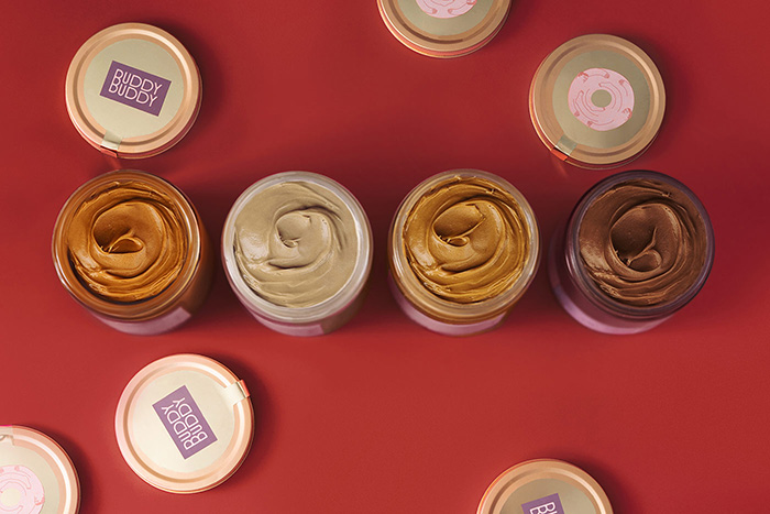 Buddy Buddy是位于北歐比利時(shí)的堅(jiān)果醬品牌。為了設(shè)計(jì)這個(gè)身份,品牌VI設(shè)計(jì)公司希望傳遞一種年輕的氛圍,同時(shí)又要好玩有趣味一些。