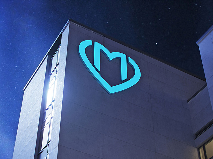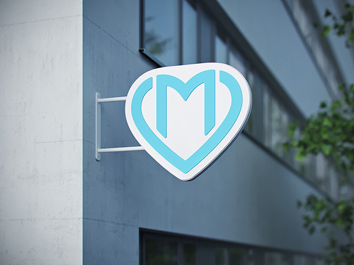當(dāng)您接近建筑物時,大心臟從視野中消失了:要再次看到它,您需要傾斜頭部。這就是為什么通過支架面板上的徽標(biāo)來標(biāo)記多診所的入口。西安vi設(shè)計(jì)公司感覺這些面板安裝在較低的高度,可以從人行道上輕松看到。