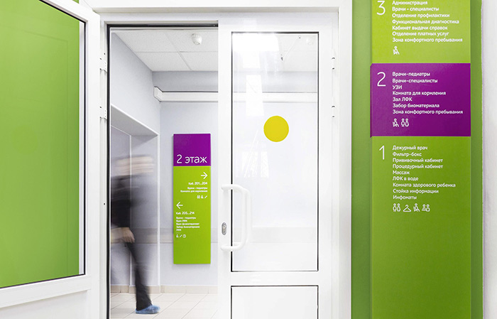 現(xiàn)在,綜合診所的入口處標(biāo)有漂亮的標(biāo)志,這些標(biāo)志設(shè)計(jì)遵循《莫斯科設(shè)計(jì)規(guī)范》。
