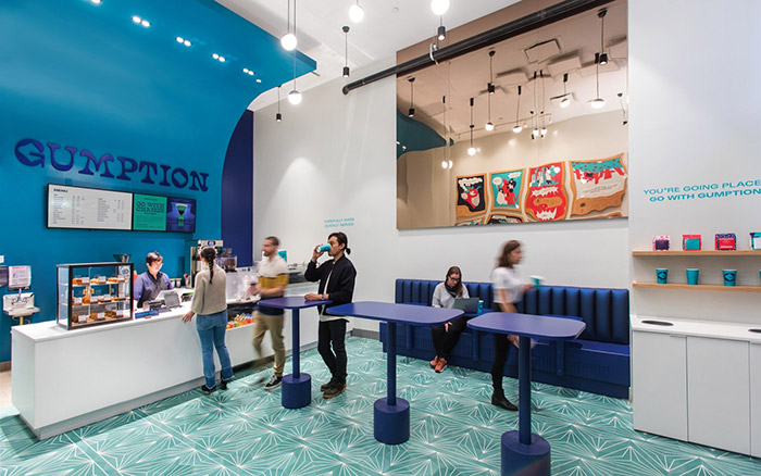 然后,南昌vi設(shè)計(jì)注意到根據(jù)設(shè)計(jì)變革性零售體驗(yàn)的歷史,VI設(shè)計(jì)公司開(kāi)始工作,通過(guò)獨(dú)特而有趣的店面空間設(shè)計(jì)將Gumption品牌帶入生活,充分發(fā)揮精致的咖啡提示。從吸引眼球的店面到生動(dòng)地講述創(chuàng)始人故事的漫畫(huà)墻,再到標(biāo)志性的波狀中心logo設(shè)計(jì),暗示著從第一口咖啡中涌出的奔涌感,該空間經(jīng)過(guò)精心設(shè)計(jì),可以提升人與人之間的聯(lián)系,南昌vi設(shè)計(jì)感覺(jué)同時(shí)迅速為客戶(hù)提供服務(wù)屢獲殊榮的咖啡。而且,為了進(jìn)一步增強(qiáng)店內(nèi)產(chǎn)品,我們制定了食品合作伙伴策略,其中采用了其他本地女性所有企業(yè)采購(gòu)的商品。