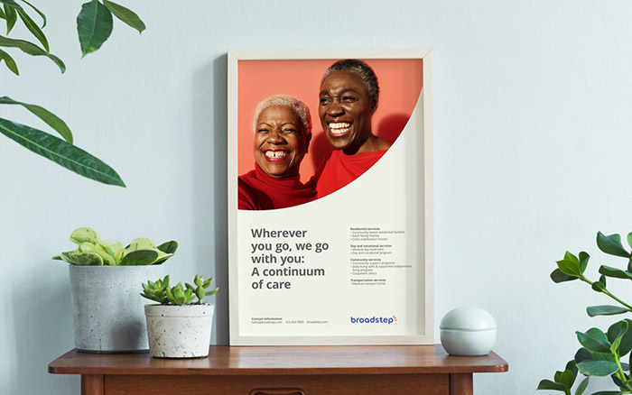 杭州vi設(shè)計公司報道:對于有智力或發(fā)育障礙(I / DD)或行為問題的個人家庭,尋找值得信賴的看護(hù)人的壓力很大。對于個人本身,如果沒有高級護(hù)理,杭州vi設(shè)計公司認(rèn)識到個人成長中的任何小步驟都將難以實現(xiàn)。對于他們的照料者而言,這是可以想象的最具挑戰(zhàn)性的工作之一。而且,盡管整個領(lǐng)域在過去的幾十年中面臨著巨大的變化和挑戰(zhàn),但要找到牢固的立足點對每個人來說都是困難的。品牌VI設(shè)計公司直接與客戶組織領(lǐng)導(dǎo)一起工作,將Broadstep定位為行為健康領(lǐng)域的領(lǐng)導(dǎo)者,該領(lǐng)域的燈塔,有需要的人們的溫馨之家以及社區(qū)的不懈擁護(hù)者。我們以前作為Phoenix Care Systems運(yùn)營,擁有針對特定設(shè)施和計劃的幾個獨特品牌,品牌VI設(shè)計公司制定了一項戰(zhàn)略,通過品牌平臺開發(fā),品牌架構(gòu)策略,命名,視覺logo和言語識別以及體驗設(shè)計,包括一個可以幫助他們講述故事的新網(wǎng)站。杭州vi設(shè)計公司認(rèn)為該組織的新名稱“ Broadstep”體現(xiàn)了它的使命,即從整體上思考如何幫助其服務(wù)的人們以自己的方式取得進(jìn)步。聽起來像與他們建立的家一樣的,支持性的社區(qū)一樣開放和令人接受?;諛?biāo)是其簽名。
