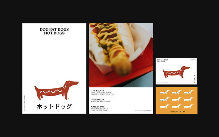 福州vi設(shè)計(jì)公司報(bào)道:DOG EAT DOGS,是皇后鎮(zhèn)的狗販。當(dāng)?shù)厝撕万湴?。福州?biāo)志設(shè)計(jì)公司獲知這些獨(dú)特的熱狗的秘訣之一就是其原始的調(diào)味料。是他們制造的-只有他們!概念:企業(yè)品牌的支柱之一是其醬汁,它具有多元文化背景。這就是為什么品牌VI設(shè)計(jì)視覺識別具有多種語言的原因,因?yàn)槲覀円从翅u汁的秘密成分中具有的混合風(fēng)味。