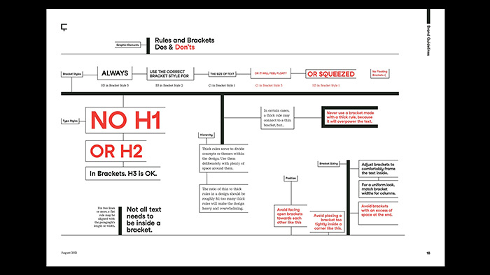 標(biāo)志設(shè)計(jì)以帶有略微圓角的“C”標(biāo)志為中心,暗示括號(hào)或演講或思想泡泡。標(biāo)志設(shè)計(jì)是一種靈活的視覺語(yǔ)言的核心,由括號(hào)和規(guī)則構(gòu)成,標(biāo)志logo粗細(xì),受到組織結(jié)構(gòu)圖和網(wǎng)絡(luò)的啟發(fā)。通過結(jié)合元素和排版,可以創(chuàng)建各種信息圖表。調(diào)色板是黑色和白色,帶有紅色調(diào)。鄭州vi設(shè)計(jì)公司發(fā)現(xiàn)設(shè)計(jì)者為系統(tǒng)制定了指導(dǎo)方針,該系統(tǒng)有自己的內(nèi)部邏輯;例如,括號(hào)或圖像必須始終連接到一條線。這些網(wǎng)絡(luò)說明了開放性和聯(lián)系性,這對(duì)公司的理念很重要。這些圖形還向未來主義和達(dá)達(dá)派錯(cuò)綜復(fù)雜的遠(yuǎn)見圖表和圖表致敬,強(qiáng)化了古臘亦品牌作為變革工程師的理念。