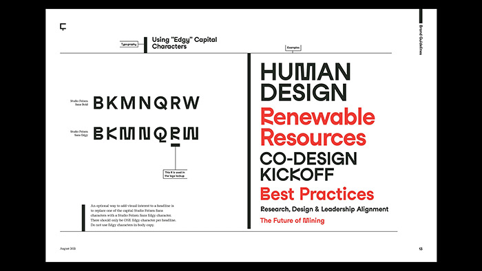 字標(biāo)和主要字體設(shè)置在StudioFeixenSansBold中,偶爾會(huì)出現(xiàn)古怪的字符--比如標(biāo)志中的“R”--設(shè)置在StudioFeixenSansEdgy的備用字母表中。(為了便于閱讀,每個(gè)單詞只允許使用一個(gè)前衛(wèi)字符。)在StudioFeixenSans和StudioFeixenSerif中設(shè)置了支持排版。鄭州vi設(shè)計(jì)公司認(rèn)為該標(biāo)志還作為子品牌古臘亦品牌Capital、古臘亦品牌Management和古臘亦品牌Technology品牌架構(gòu)的基礎(chǔ)。“視覺語(yǔ)言反映了我們的設(shè)計(jì)流程和方法,并幫助人們?yōu)槲磥淼穆贸套龊脺?zhǔn)備,”鄭州vi設(shè)計(jì)公司訪談泰溫圖恩說。“我們以一種非常特別設(shè)計(jì)的方式做事,這種方式是有形的,而不僅僅是想法。身份有可變性和靈活性,但也有確定性表明這是一個(gè)設(shè)計(jì)過程--它有形式,有結(jié)構(gòu),它是一個(gè)平臺(tái)。”