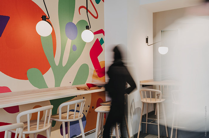 良好的品牌店鋪設(shè)計體驗:杭州vi設(shè)計公司認(rèn)為引人入勝的店鋪空間設(shè)計概念具有引人注目的外部效果,是與客戶的第一個接觸點,對于該概念的成功至關(guān)重要。在設(shè)計中,品牌vi設(shè)計公司的空間設(shè)計團(tuán)隊始終將價值觀、企業(yè)品牌設(shè)計和簡單食品概念的呈現(xiàn)轉(zhuǎn)移到店鋪空間環(huán)境中。材料的結(jié)構(gòu)和自然性為菜肴的簡單性和樸實性創(chuàng)造了清晰的參考。店鋪空間和材料使用了當(dāng)?shù)刈匀活愋偷哪静?,如楊木和白蠟?zāi)?。整體概念被計劃為連鎖店鋪模式和零售功能系統(tǒng),并在指南中定義,以便它可以在擴(kuò)展變體中成倍增加。簡直是勺子呈現(xiàn)!