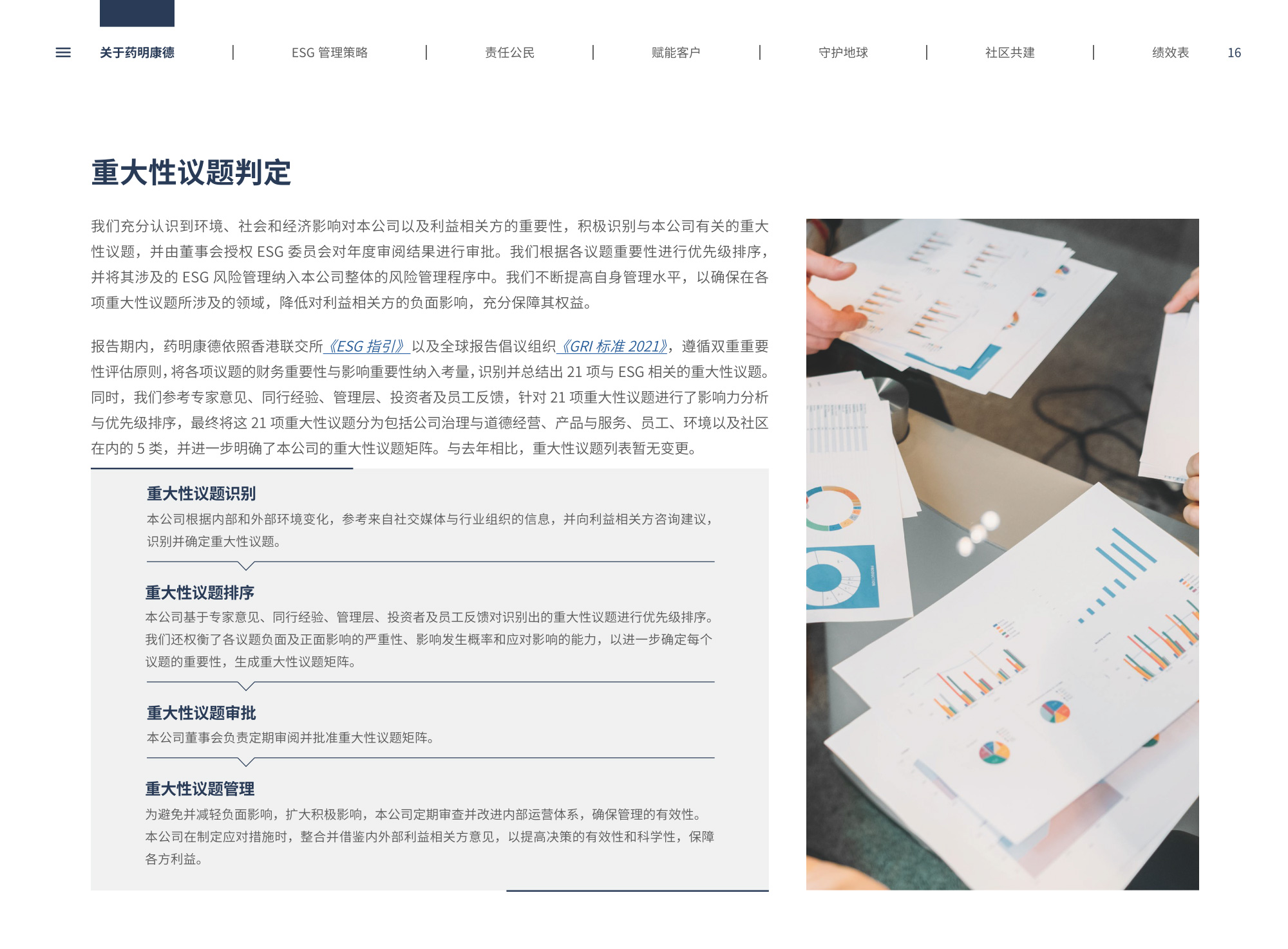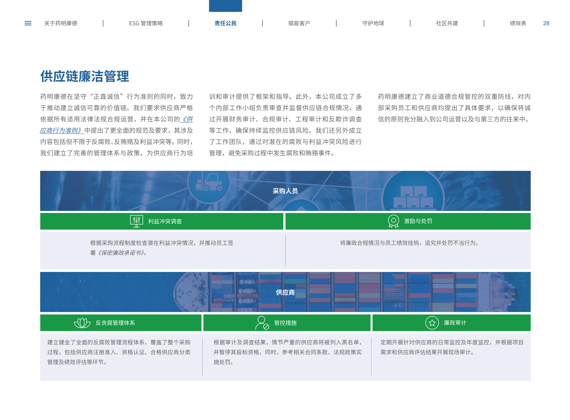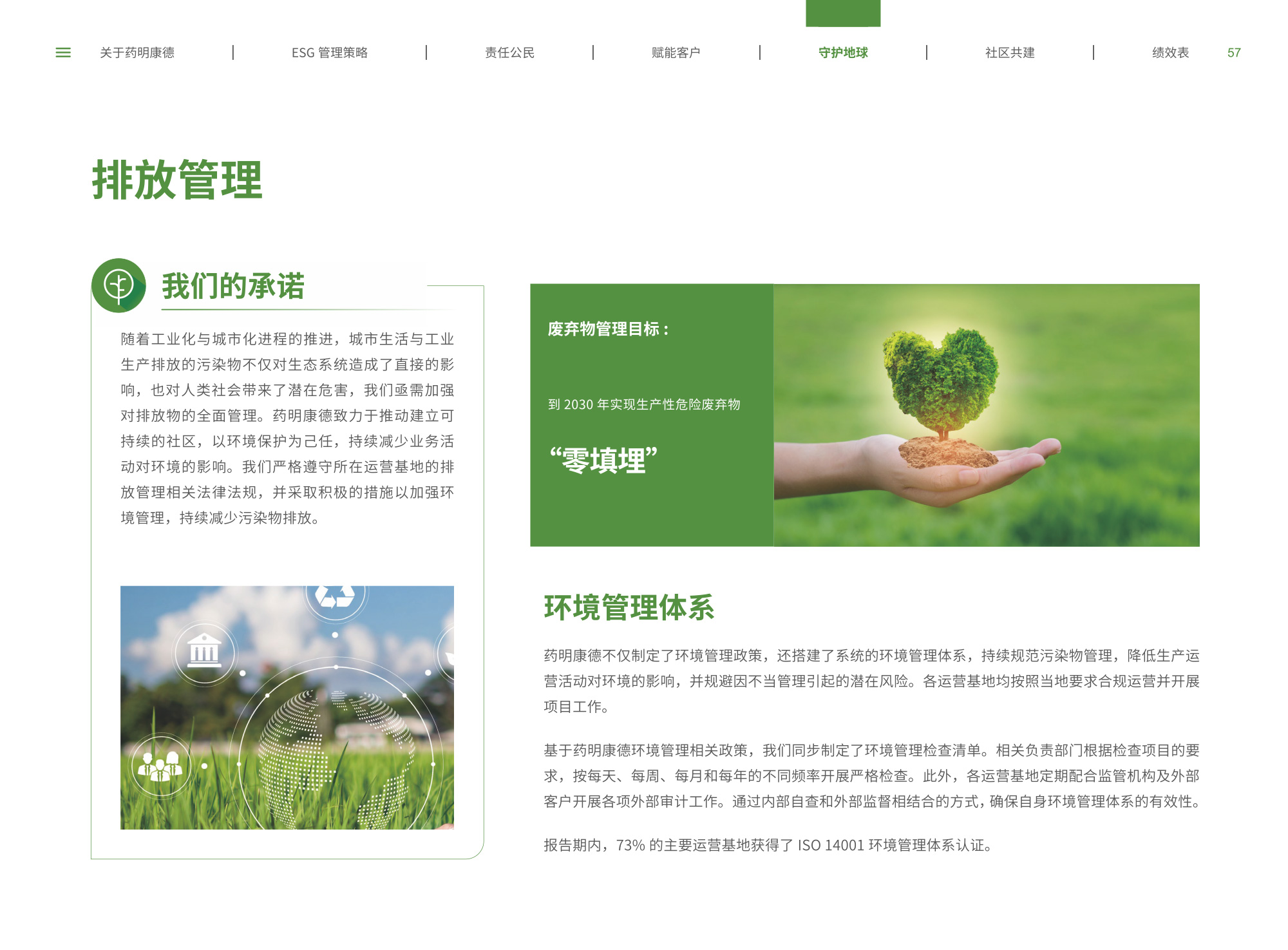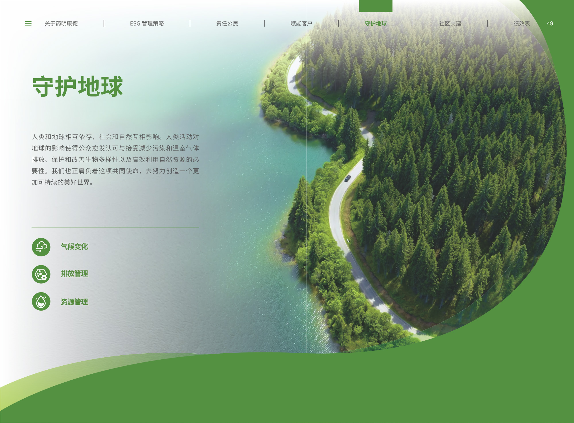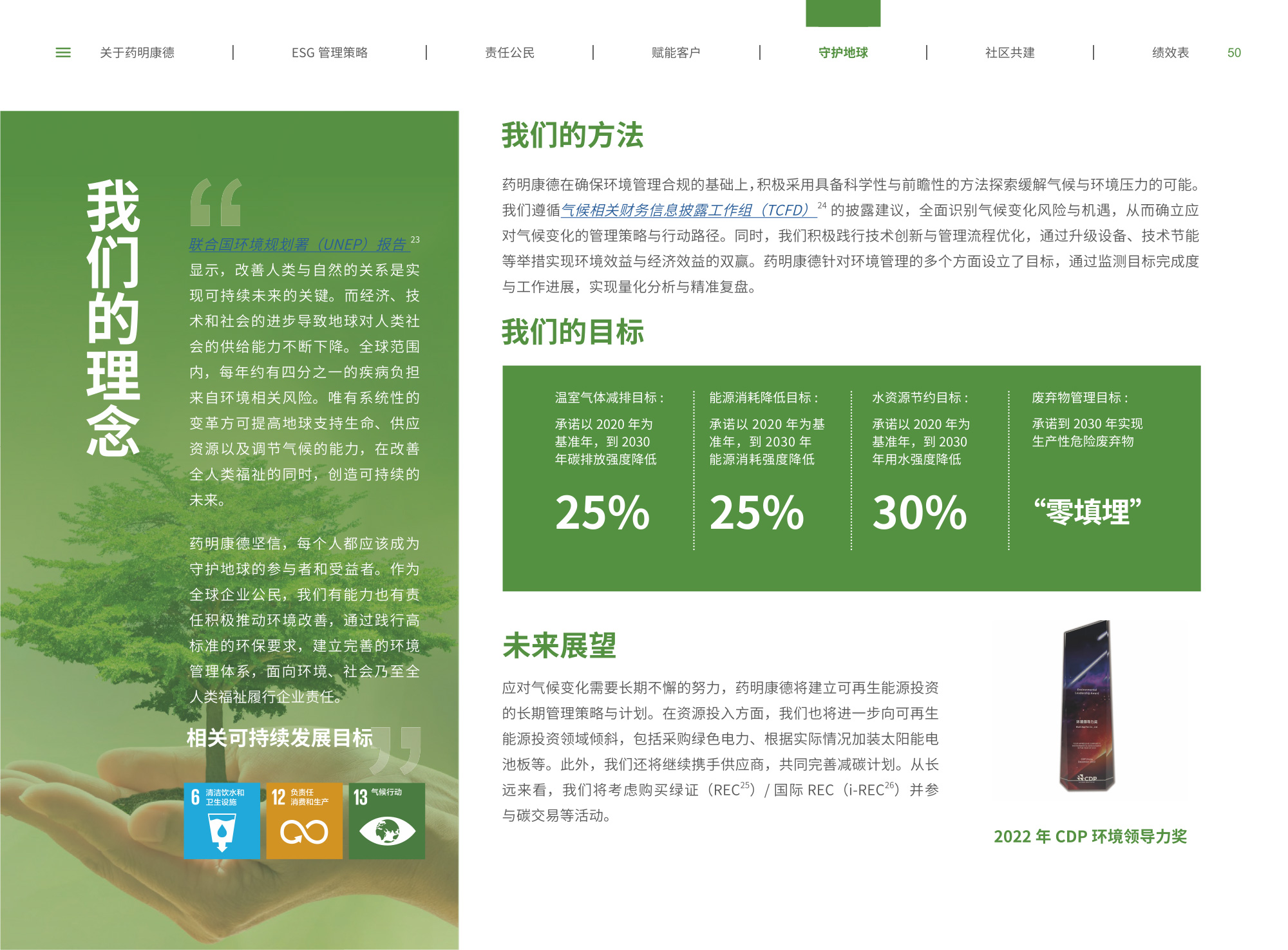 我們圍繞“致力更健康、更美的未來”企業(yè)愿景,通過純白底色與低飽和綠色漸變貫穿始終,象征科技與生命的純凈交匯;封面以燙銀字呼應(yīng)企業(yè)名稱英文名首字母,搭配手冊(cè)宣傳字樣,簡(jiǎn)潔而具分量。整冊(cè)采用模塊化網(wǎng)格布局,左右留白讓信息呼吸,左側(cè)豎排頁(yè)碼與章節(jié)色條同步變色,既方便快速檢索又形成節(jié)奏感。開篇與目錄以極簡(jiǎn)線條圖標(biāo)提煉關(guān)鍵詞,將多項(xiàng)議題濃縮為可視符號(hào);隨后關(guān)于企業(yè)跨頁(yè)以大面積留白托舉核心使命,輔以半透明數(shù)據(jù)云圖,把員工、運(yùn)營(yíng)基地通過關(guān)鍵數(shù)字轉(zhuǎn)化為動(dòng)態(tài)視覺錨點(diǎn)。ESG管理策略章節(jié)用綠色折線疊加世界地圖,標(biāo)示全球合作伙伴與減碳路線圖,彰顯平臺(tái)賦能廣度;藥物研發(fā)倫理部分則以顯微鏡底紋與手寫簽名式標(biāo)題,傳遞嚴(yán)謹(jǐn)與人文并重。守護(hù)地球篇章引入TCFD框架四象限圖,結(jié)合2030碳排放強(qiáng)度降低25%、水資源強(qiáng)度降低30%等目標(biāo),用漸變圓環(huán)實(shí)時(shí)填充完成度,營(yíng)造“生長(zhǎng)”意象;社區(qū)共建頁(yè)以真實(shí)影像拼貼呈現(xiàn)健康小站、鄉(xiāng)村義診場(chǎng)景,色溫偏暖,與冷峻科研畫面形成情感互補(bǔ)???jī)效表摒棄傳統(tǒng)表格,改用可撕拉式信息條設(shè)計(jì),讀者可沿虛線取下帶走,強(qiáng)化互動(dòng);附錄二維碼暗壓于封底,掃碼即可獲取完整數(shù)據(jù)與互動(dòng)碳足跡計(jì)算器,實(shí)現(xiàn)紙本與數(shù)字無縫銜接。整體在理性數(shù)據(jù)與感性故事之間保持平衡,既展示了集團(tuán)企業(yè)技術(shù)縱深,也傳遞其攜手全球伙伴共筑可持續(xù)未來的溫度與決心。