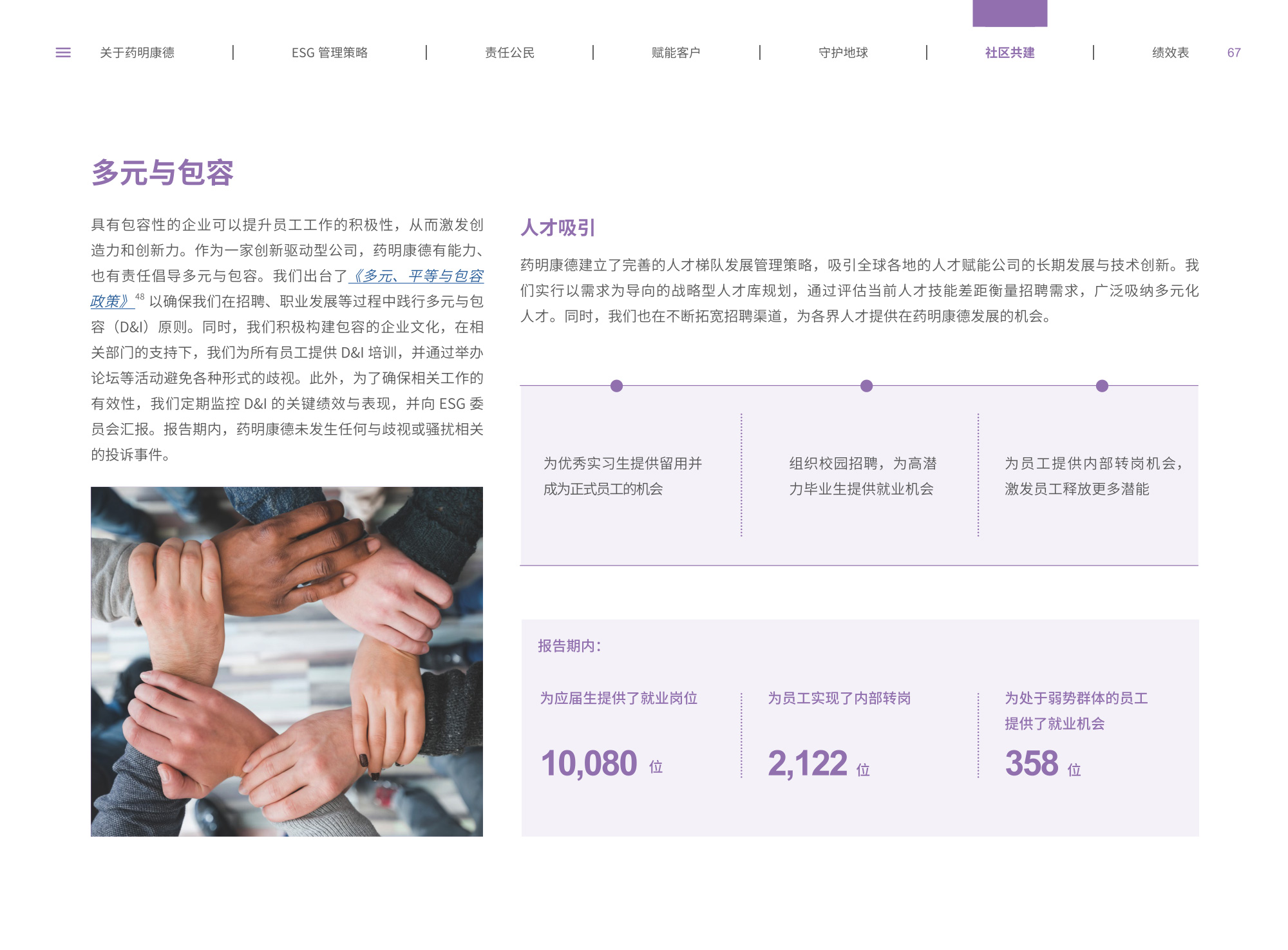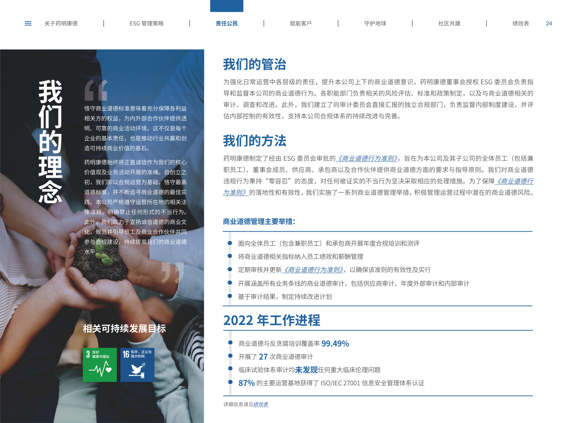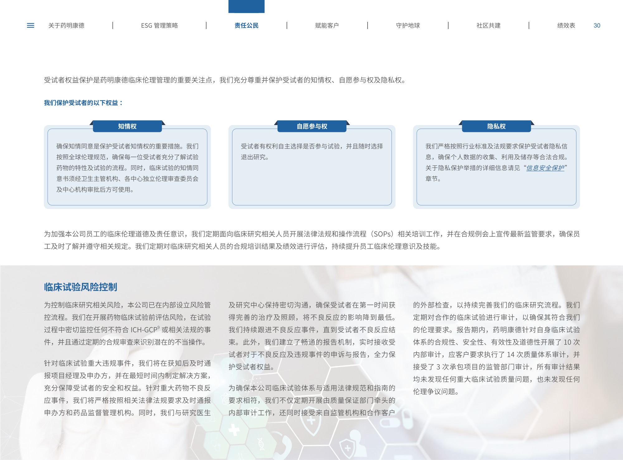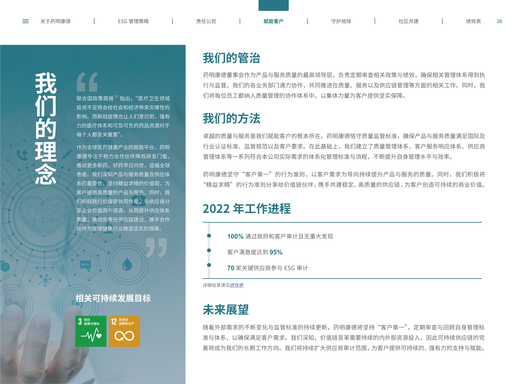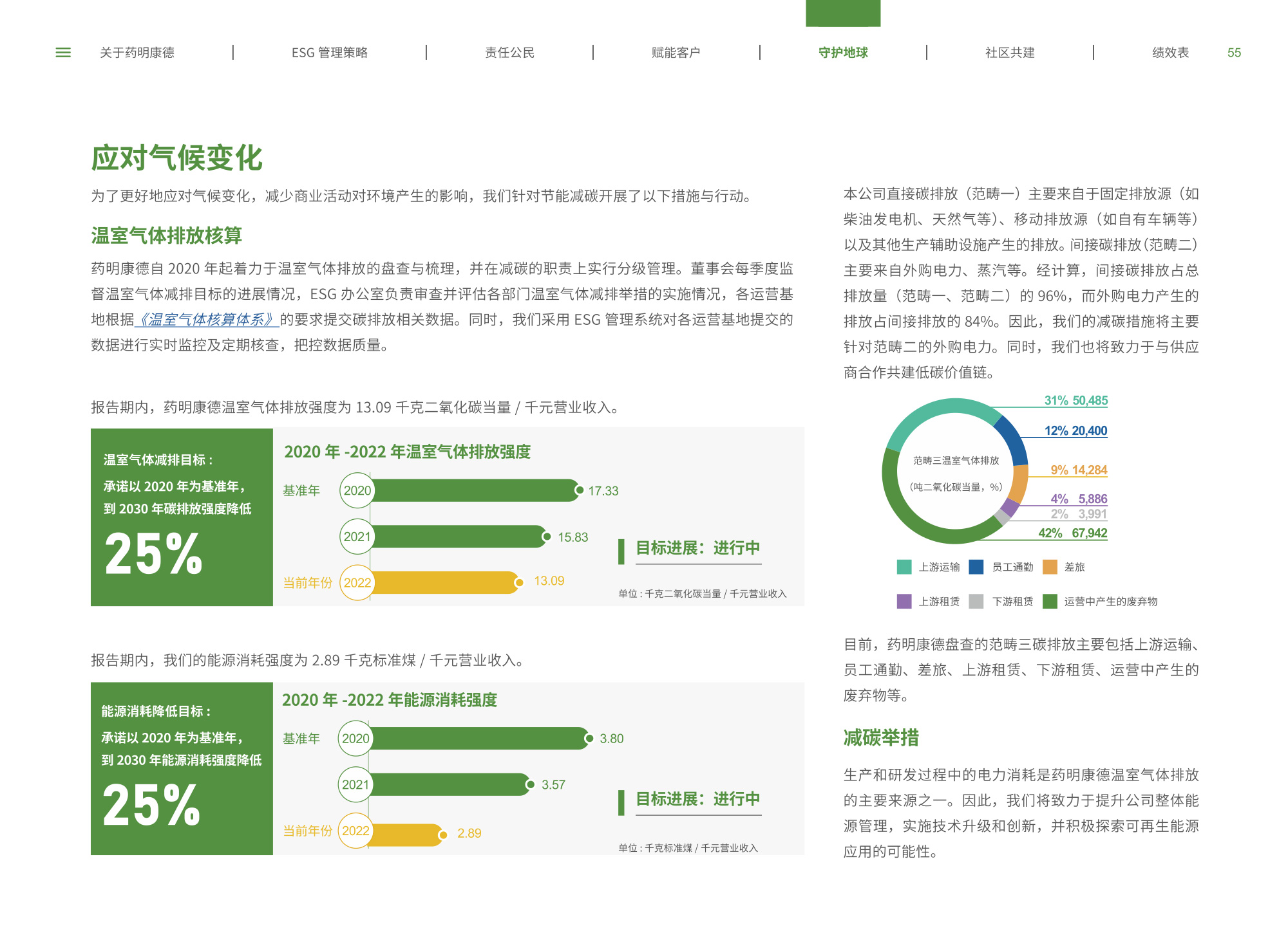 我們圍繞“致力更健康、更美的未來”企業(yè)愿景,通過純白底色與低飽和綠色漸變貫穿始終,象征科技與生命的純凈交匯;封面以燙銀字呼應(yīng)企業(yè)名稱英文名首字母,搭配手冊(cè)宣傳字樣,簡(jiǎn)潔而具分量。整冊(cè)采用模塊化網(wǎng)格布局,左右留白讓信息呼吸,左側(cè)豎排頁(yè)碼與章節(jié)色條同步變色,既方便快速檢索又形成節(jié)奏感。開篇與目錄以極簡(jiǎn)線條圖標(biāo)提煉關(guān)鍵詞,將多項(xiàng)議題濃縮為可視符號(hào);隨后關(guān)于企業(yè)跨頁(yè)以大面積留白托舉核心使命,輔以半透明數(shù)據(jù)云圖,把員工、運(yùn)營(yíng)基地通過關(guān)鍵數(shù)字轉(zhuǎn)化為動(dòng)態(tài)視覺錨點(diǎn)。ESG管理策略章節(jié)用綠色折線疊加世界地圖,標(biāo)示全球合作伙伴與減碳路線圖,彰顯平臺(tái)賦能廣度;藥物研發(fā)倫理部分則以顯微鏡底紋與手寫簽名式標(biāo)題,傳遞嚴(yán)謹(jǐn)與人文并重。守護(hù)地球篇章引入TCFD框架四象限圖,結(jié)合2030碳排放強(qiáng)度降低25%、水資源強(qiáng)度降低30%等目標(biāo),用漸變圓環(huán)實(shí)時(shí)填充完成度,營(yíng)造“生長(zhǎng)”意象;社區(qū)共建頁(yè)以真實(shí)影像拼貼呈現(xiàn)健康小站、鄉(xiāng)村義診場(chǎng)景,色溫偏暖,與冷峻科研畫面形成情感互補(bǔ)???jī)效表摒棄傳統(tǒng)表格,改用可撕拉式信息條設(shè)計(jì),讀者可沿虛線取下帶走,強(qiáng)化互動(dòng);附錄二維碼暗壓于封底,掃碼即可獲取完整數(shù)據(jù)與互動(dòng)碳足跡計(jì)算器,實(shí)現(xiàn)紙本與數(shù)字無縫銜接。整體在理性數(shù)據(jù)與感性故事之間保持平衡,既展示了集團(tuán)企業(yè)技術(shù)縱深,也傳遞其攜手全球伙伴共筑可持續(xù)未來的溫度與決心。