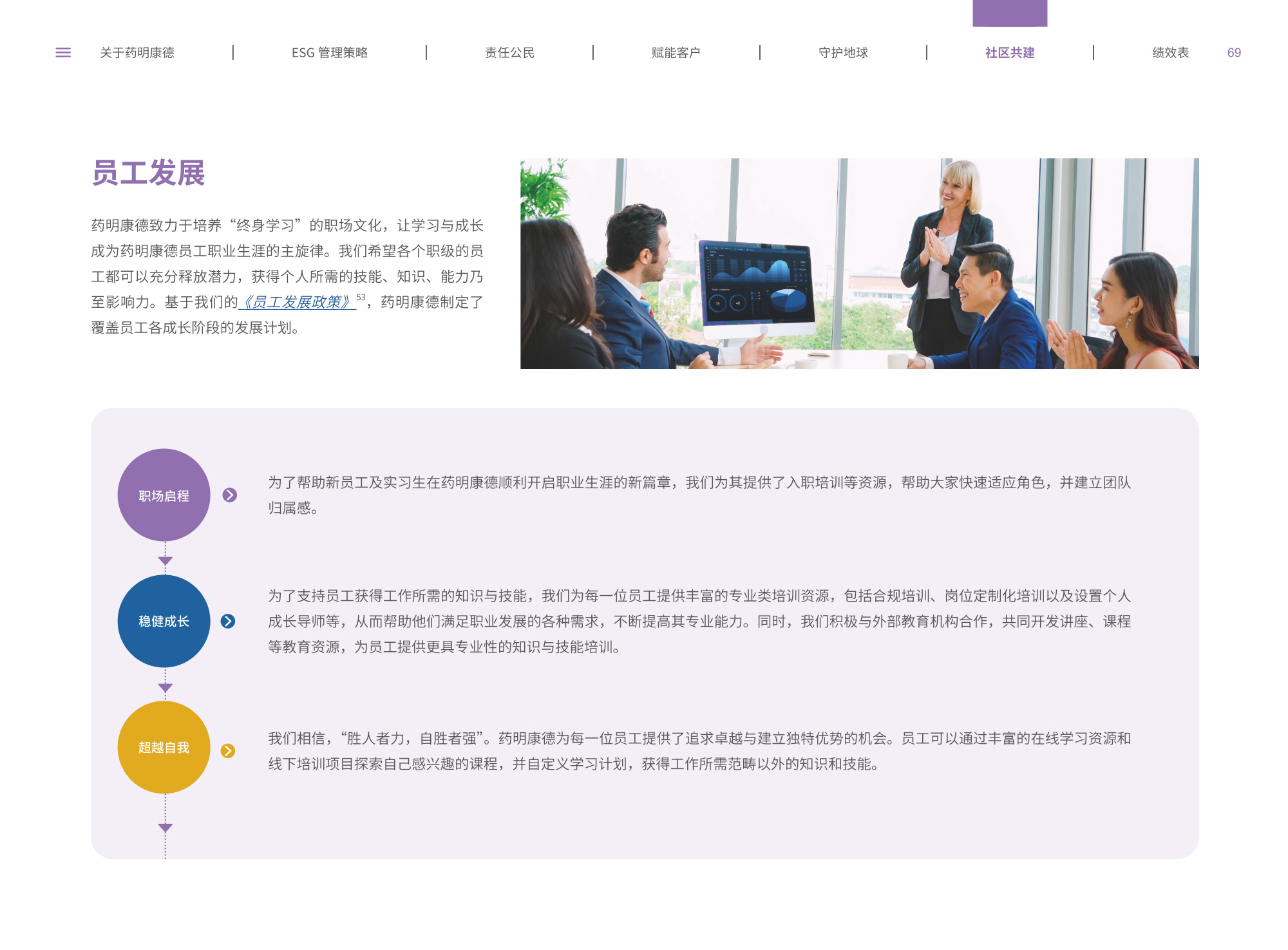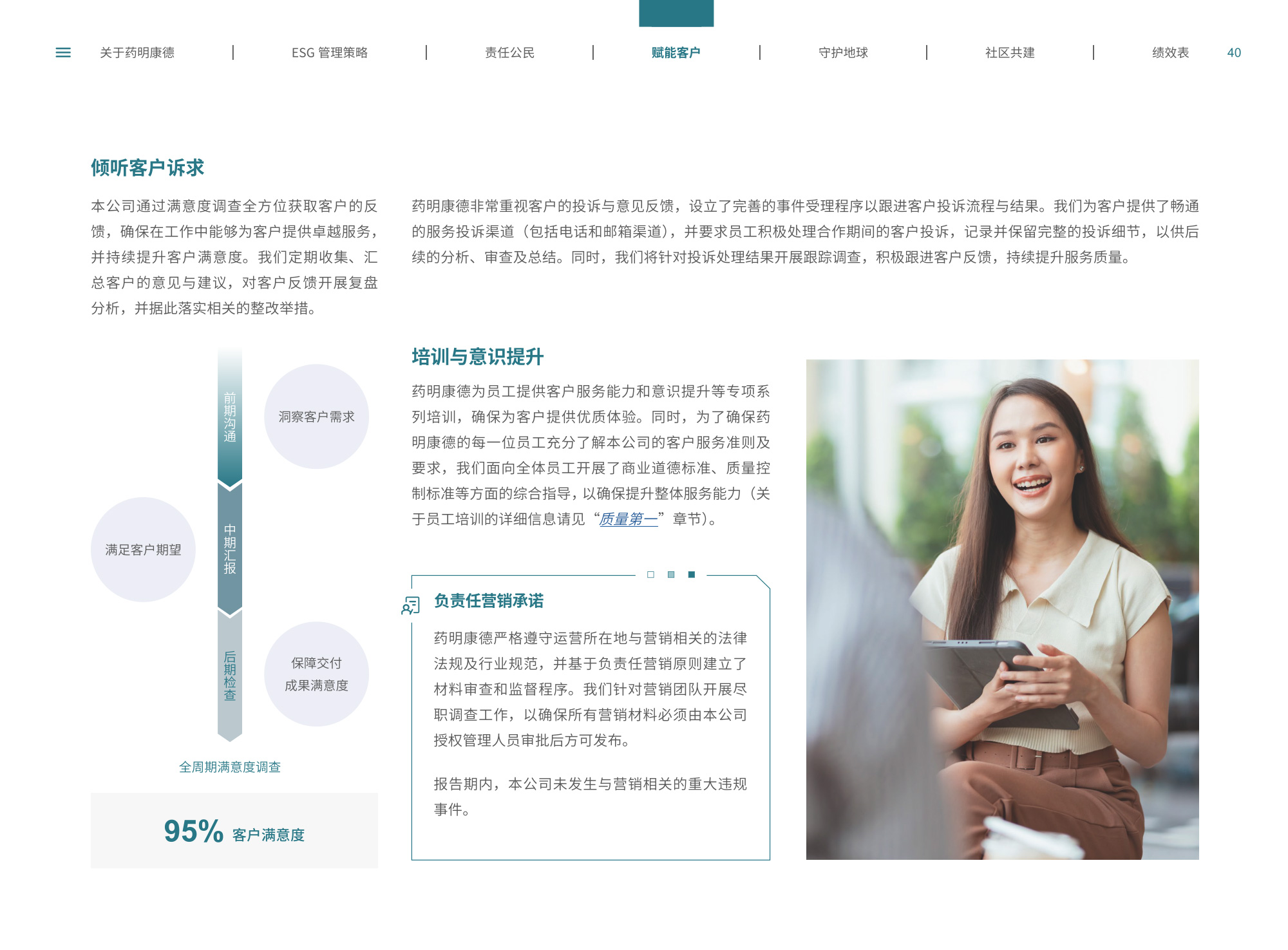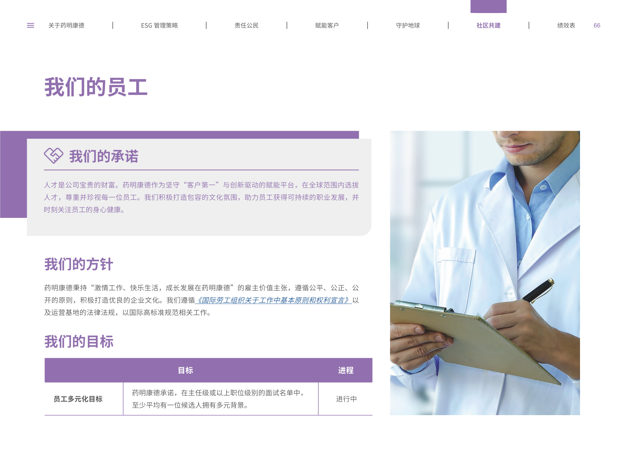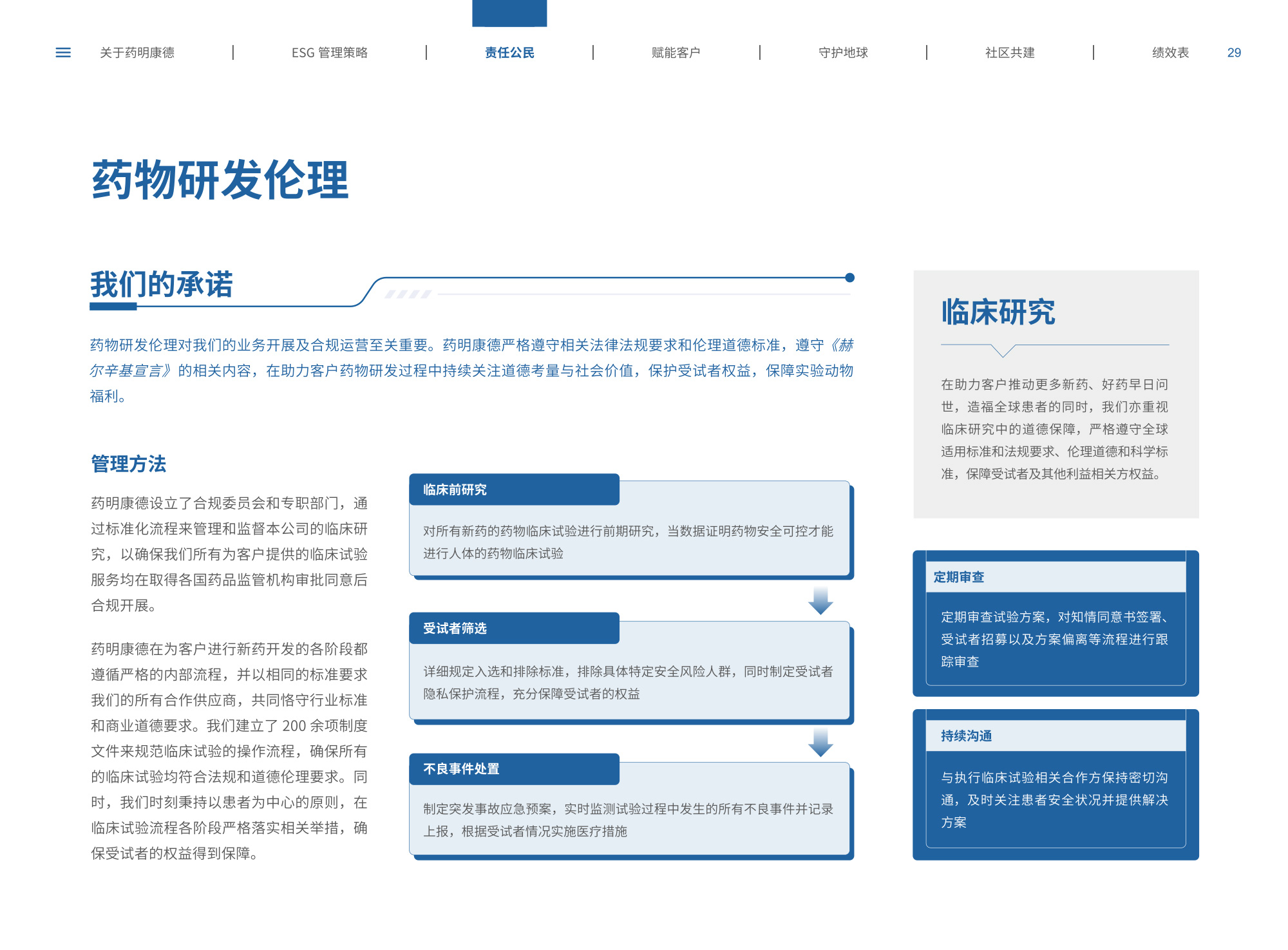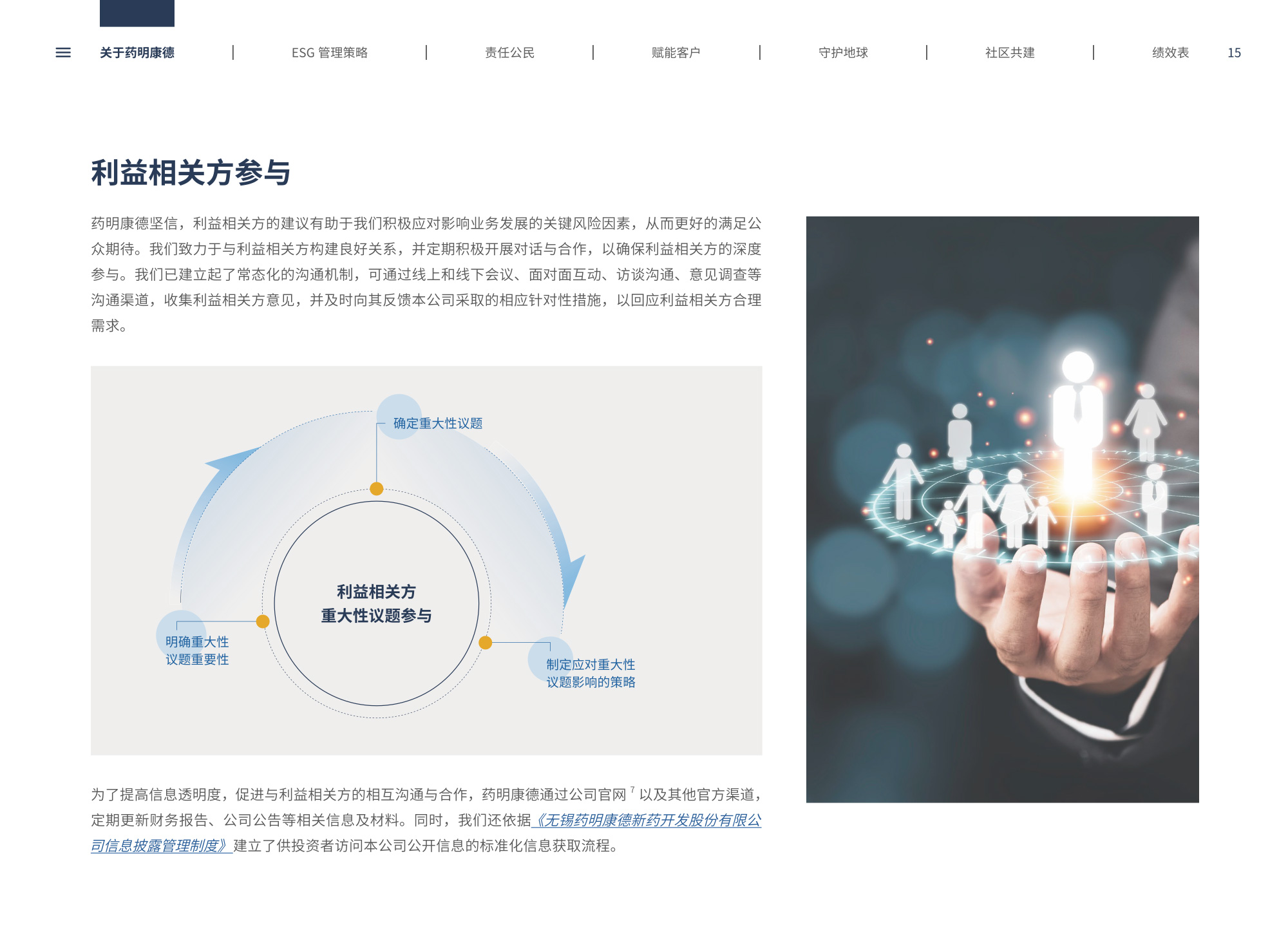 我們圍繞“致力更健康、更美的未來”企業(yè)愿景,通過純白底色與低飽和綠色漸變貫穿始終,象征科技與生命的純凈交匯;封面以燙銀字呼應(yīng)企業(yè)名稱英文名首字母,搭配手冊(cè)宣傳字樣,簡(jiǎn)潔而具分量。整冊(cè)采用模塊化網(wǎng)格布局,左右留白讓信息呼吸,左側(cè)豎排頁(yè)碼與章節(jié)色條同步變色,既方便快速檢索又形成節(jié)奏感。開篇與目錄以極簡(jiǎn)線條圖標(biāo)提煉關(guān)鍵詞,將多項(xiàng)議題濃縮為可視符號(hào);隨后關(guān)于企業(yè)跨頁(yè)以大面積留白托舉核心使命,輔以半透明數(shù)據(jù)云圖,把員工、運(yùn)營(yíng)基地通過關(guān)鍵數(shù)字轉(zhuǎn)化為動(dòng)態(tài)視覺錨點(diǎn)。ESG管理策略章節(jié)用綠色折線疊加世界地圖,標(biāo)示全球合作伙伴與減碳路線圖,彰顯平臺(tái)賦能廣度;藥物研發(fā)倫理部分則以顯微鏡底紋與手寫簽名式標(biāo)題,傳遞嚴(yán)謹(jǐn)與人文并重。守護(hù)地球篇章引入TCFD框架四象限圖,結(jié)合2030碳排放強(qiáng)度降低25%、水資源強(qiáng)度降低30%等目標(biāo),用漸變圓環(huán)實(shí)時(shí)填充完成度,營(yíng)造“生長(zhǎng)”意象;社區(qū)共建頁(yè)以真實(shí)影像拼貼呈現(xiàn)健康小站、鄉(xiāng)村義診場(chǎng)景,色溫偏暖,與冷峻科研畫面形成情感互補(bǔ)???jī)效表摒棄傳統(tǒng)表格,改用可撕拉式信息條設(shè)計(jì),讀者可沿虛線取下帶走,強(qiáng)化互動(dòng);附錄二維碼暗壓于封底,掃碼即可獲取完整數(shù)據(jù)與互動(dòng)碳足跡計(jì)算器,實(shí)現(xiàn)紙本與數(shù)字無縫銜接。整體在理性數(shù)據(jù)與感性故事之間保持平衡,既展示了集團(tuán)企業(yè)技術(shù)縱深,也傳遞其攜手全球伙伴共筑可持續(xù)未來的溫度與決心。