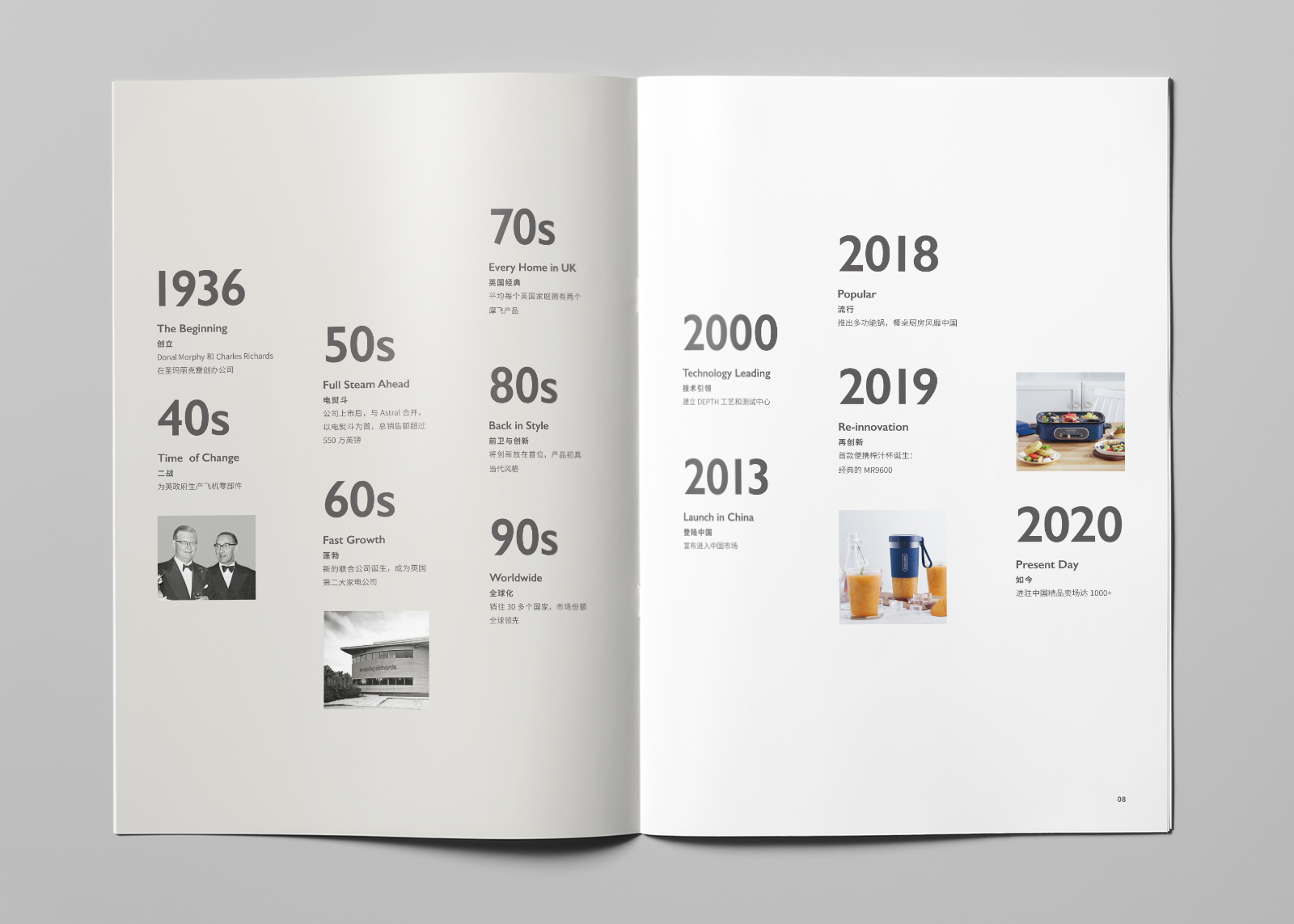 1936年,Donal Morphy和Charles Richard在英國創(chuàng)立了MoR有限公司生產小型家電。80多年來,MoR品牌一直為英國以及全球精英家庭的廚房及日常生活增添光彩。在二戰(zhàn)的背景下,MoR開始生產軍工零件,迅速掌握了當時先進的科技,成為英國高端的小家電品牌之一。此后 MoR全速前進,60年代合并英國BDA,70年代成為英國最大的家電公司,90年代產品熱銷全球逾30個國家,每天都為數百萬個家庭提供美好廚房體驗。2013年MoR進入中國大陸市場,致力為中國大眾提供高品質英倫創(chuàng)意小家電。通過涵蓋全生活場景的新物種產品,MoR以英倫經典設計承載新的生活方式,重新定義現代品質生活。如今人們可在全中國20多個城市、超過1000 家精品賣場尋到MoR身影。