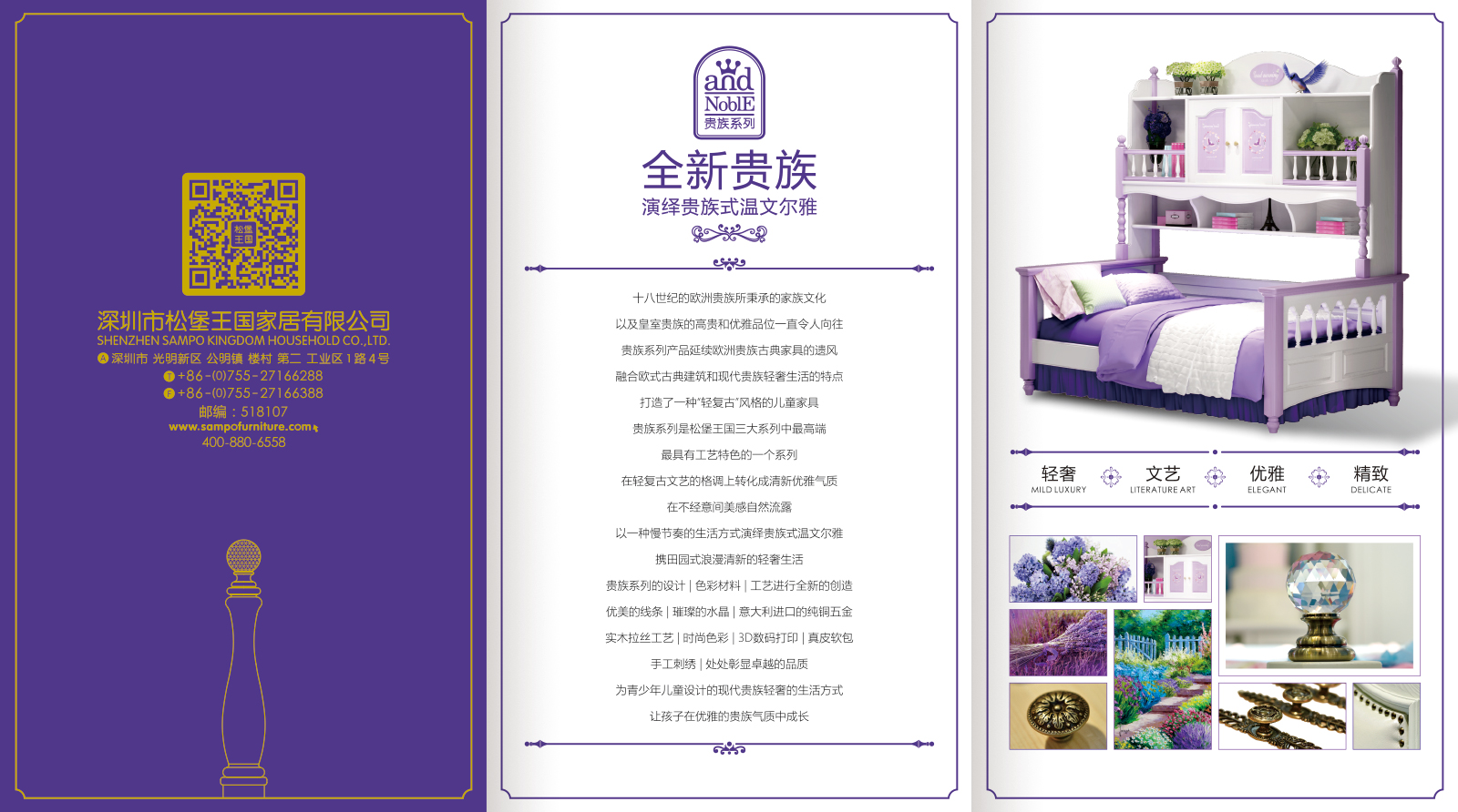 六折頁宣傳設(shè)計,為青少年兒童精心打造的高端家具,北美系列產(chǎn)品設(shè)計靈感,源于美式田園居住環(huán)境羅曼蒂克童真般的向往情懷。提煉了中國現(xiàn)代青少年對居住環(huán)境的美好愿望,通過設(shè)計師獨特的思維,匠心獨運地演繹到家具中。并將一些美式經(jīng)典元素進行全新的設(shè)計,巧妙靈活運用流線造型,同時融入歐式的奢華與高貴,結(jié)合中式的莊重與典雅,使產(chǎn)品更具有文化內(nèi)涵和品位。