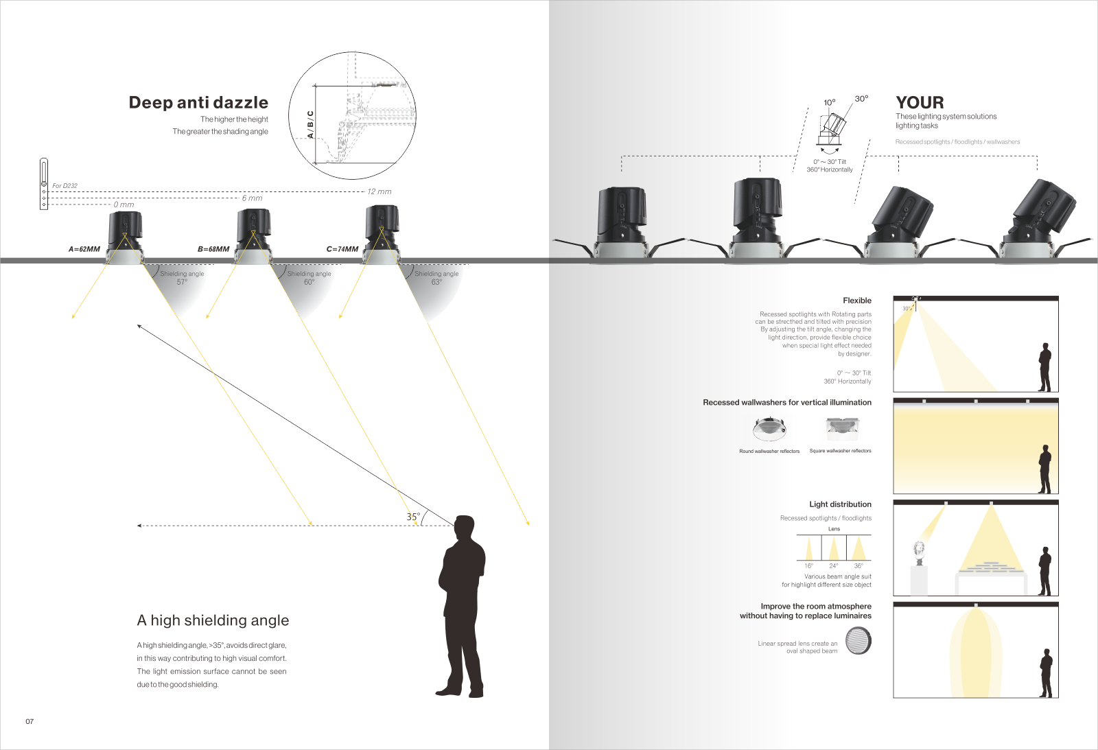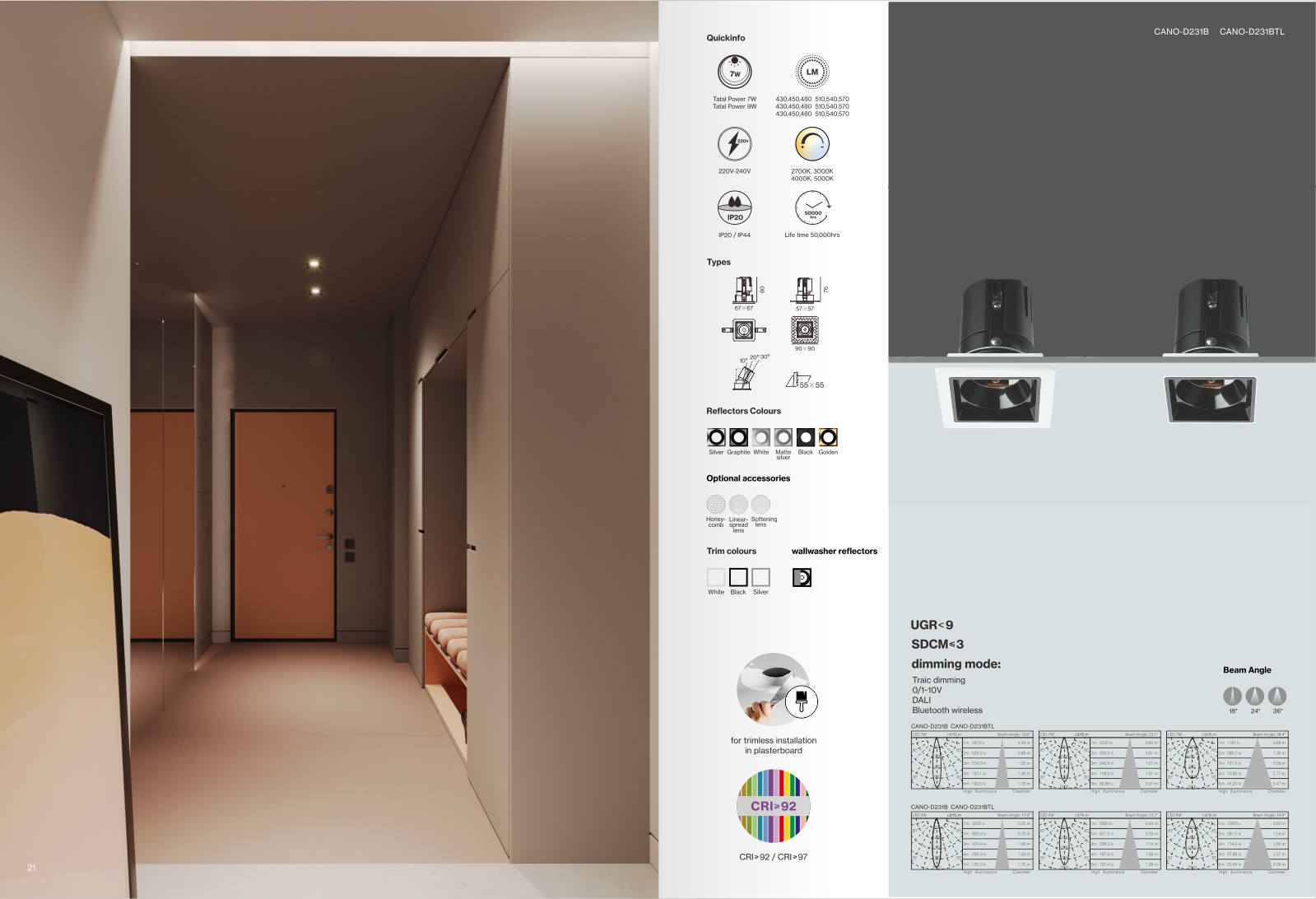 CANO酒店智能燈防眩射燈具有三重防眩功能,同時(shí)還具有良好的裝飾效果。為滿足您的個(gè)性化需求,CANO酒店智能燈防眩射燈配備了多色反光板、洗墻燈、重點(diǎn)照明等個(gè)性化燈具配件,使視覺效果更加柔和。它可以使房間內(nèi)的燈光保持均勻柔和,沒有死角。在無(wú)主燈設(shè)計(jì)中大量使用防眩射燈時(shí),主要用于重點(diǎn)照明和裝飾照明,讓室內(nèi)的燈光更有層次感。房間內(nèi)不同類型和數(shù)量的射燈可以營(yíng)造出另一種有趣的風(fēng)格,從而營(yíng)造出溫馨美妙的場(chǎng)景。射燈直接照射需要強(qiáng)調(diào)的物體,以突出主觀審美效果,從而達(dá)到焦點(diǎn)突出、環(huán)境獨(dú)特、層次豐富、氣氛濃郁、色彩繽紛的藝術(shù)效果。射燈的光線柔和優(yōu)雅,不僅可以起到整體照明的主導(dǎo)作用,還可以局部采光,烘托氣氛。