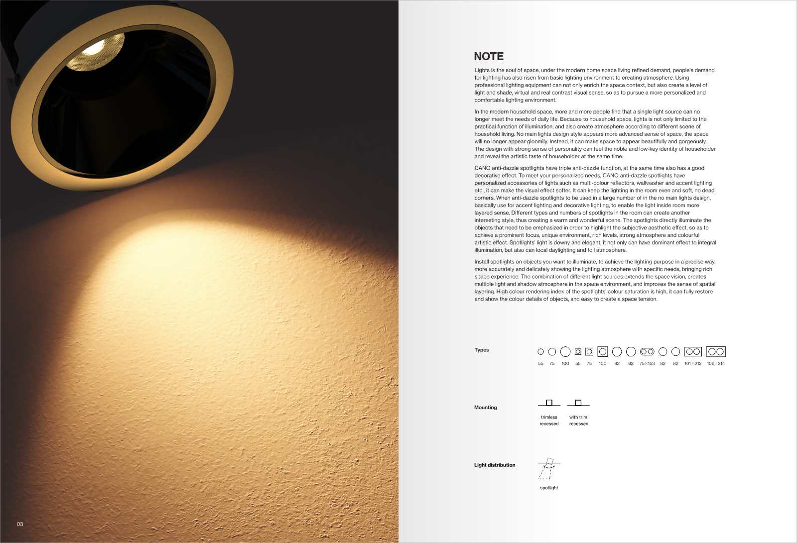 2021年青成為澳洲背景的智能LED燈LUC CANO品牌創(chuàng)作的產(chǎn)品宣傳畫冊(cè)設(shè)計(jì),我們對(duì)客戶公司的產(chǎn)品進(jìn)行了全新的梳理與產(chǎn)品參數(shù)精細(xì)化可視圖模式設(shè)計(jì),將沉長(zhǎng)復(fù)雜的燈光數(shù)據(jù)設(shè)計(jì)成簡(jiǎn)約可視化的頁(yè)面讓用戶更容易進(jìn)入閱讀狀態(tài)。燈光是空間的靈魂,在現(xiàn)代家居空間生活精致化的需求下,人們對(duì)燈光的需求也從基本的照明環(huán)境上升到營(yíng)造氛圍。使用專業(yè)的照明設(shè)備,不僅可以豐富空間脈絡(luò),還可以營(yíng)造明暗層次、虛實(shí)對(duì)比的視覺感,從而追求更加個(gè)性化、舒適的照明環(huán)境。在現(xiàn)代家居空間中,越來(lái)越多的人發(fā)現(xiàn)單一的光源已經(jīng)無(wú)法滿足日常生活的需要。因?yàn)閷?duì)于家居空間來(lái)說,燈不僅限于照明的實(shí)用功能,還可以根據(jù)家居生活的不同場(chǎng)景營(yíng)造氛圍。沒有主燈的設(shè)計(jì)風(fēng)格顯得更高級(jí)的空間感,空間不再顯得陰沉。相反,它可以讓空間顯得美麗華麗。個(gè)性感強(qiáng)的設(shè)計(jì),既能感受到戶主高貴低調(diào)的身份,又能彰顯戶主的藝術(shù)品味。