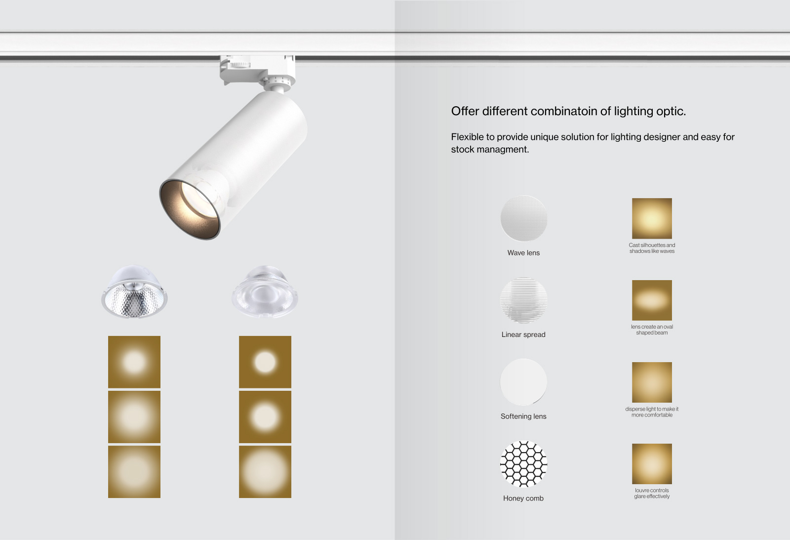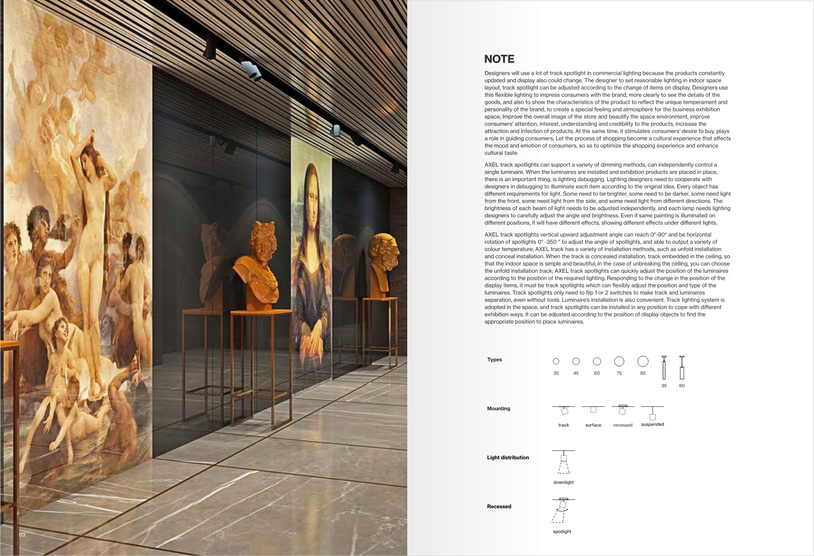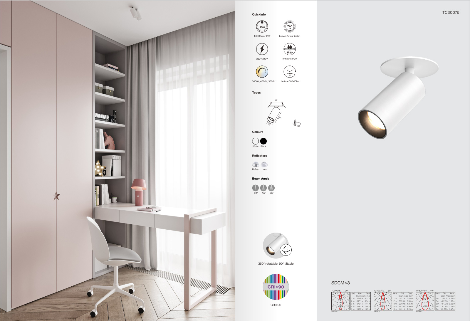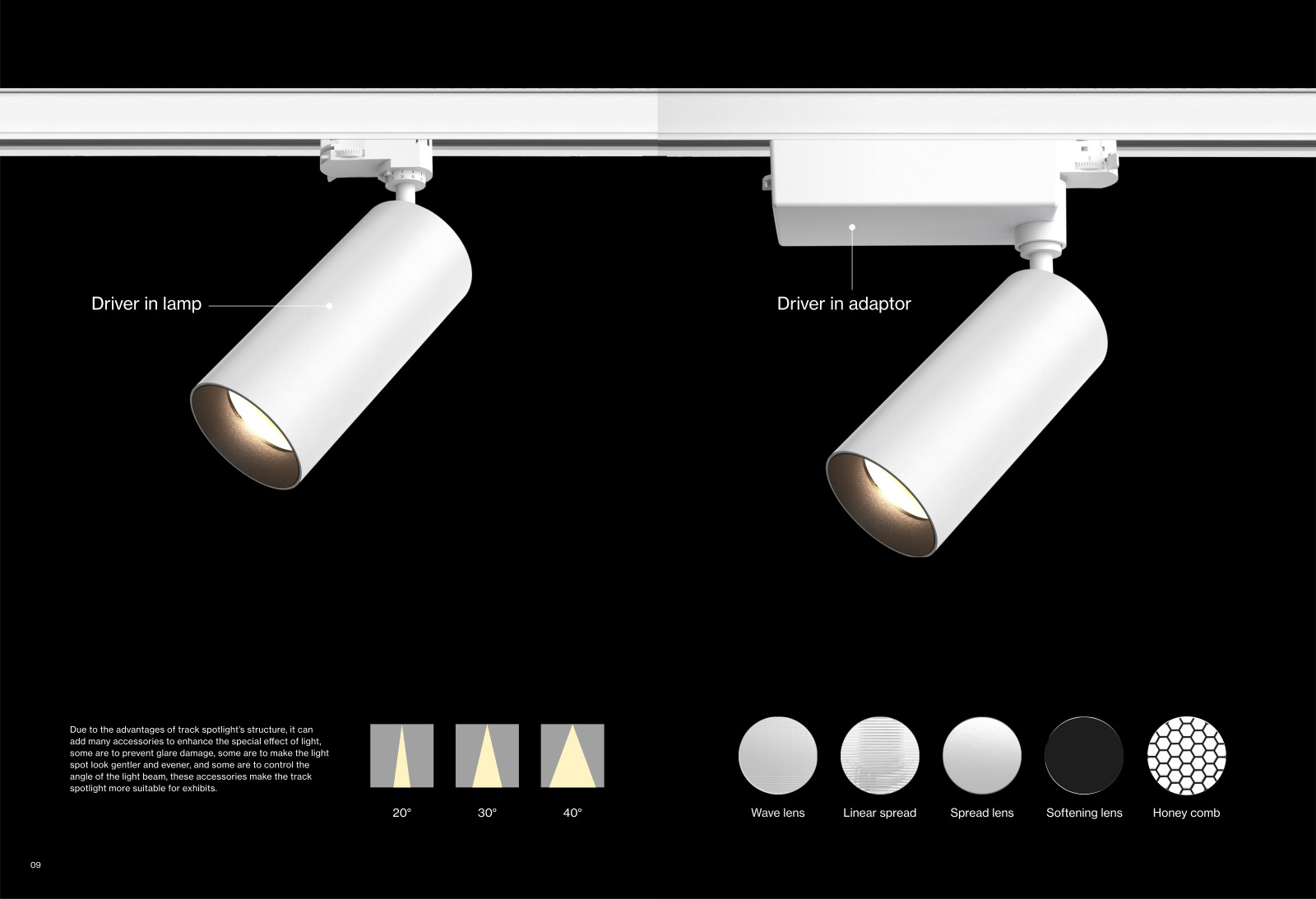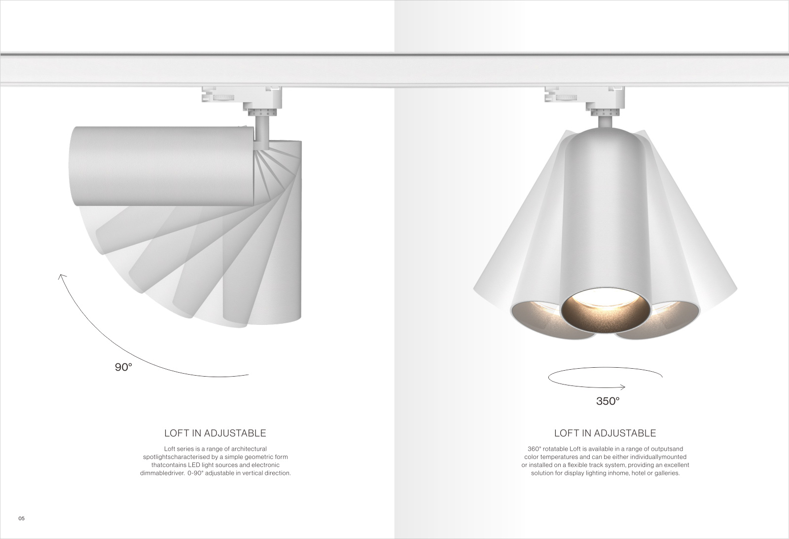 LUCAXEL軌道射燈垂直向上調(diào)節(jié)角度可以達到0°-90°,還可以水平旋轉射燈0°-350°調(diào)整射燈的角度,并可輸出多種色溫;LUCAXEL軌道有明裝和暗裝等多種安裝方式,軌道暗裝時,軌道嵌入在天花板內(nèi),這樣安裝使室內(nèi)空間既簡單又美觀;在不破壞天花板的情況下,可以選擇明裝軌道;LUCAXEL軌道射燈能夠迅速根據(jù)所需照亮物品的位置調(diào)整燈具的位置,應對展示物品位置的變化,可以靈活調(diào)整燈具的位置和燈具的類型非軌道射燈莫屬。軌道射燈只需要撥動1~2個開關就可以讓軌道和燈具分離,甚至不需要利用工具,安裝燈具也同樣方便??臻g中采用軌道照明系統(tǒng),軌道射燈可以安裝在任意位置來應對不同的展出方式,可以根據(jù)展示物品的位置進行調(diào)整,找到適合的位置放置燈具。