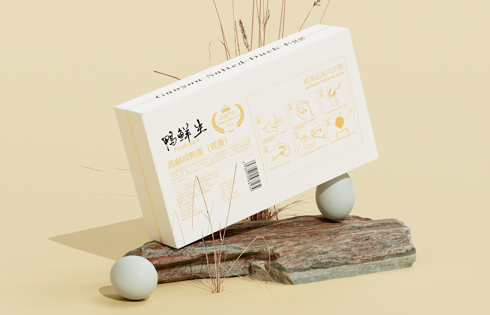 咸鴨蛋是一種傳統(tǒng)的腌制食品,因其獨(dú)特的口感和營(yíng)養(yǎng)價(jià)值而受到消費(fèi)者的喜愛。咸鴨蛋包裝設(shè)計(jì)要突出產(chǎn)品的品質(zhì)感。高品質(zhì)的咸鴨蛋通常采用優(yōu)質(zhì)原料,如新鮮鴨蛋、優(yōu)質(zhì)食鹽等,經(jīng)過嚴(yán)格工藝制作而成。這些信息可以通過包裝上的文字描述來體現(xiàn),例如“精選新鮮鴨蛋”、“傳統(tǒng)工藝腌制”等。此外,還可以通過展示鴨子的圖片或鴨蛋的實(shí)物照片,讓消費(fèi)者直觀感受到產(chǎn)品的品質(zhì)。