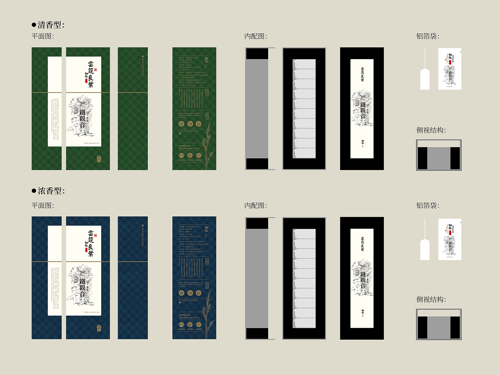 在包裝結(jié)構(gòu)上采用了翻蓋式禮盒,不僅便于取用,還顯得莊重而有儀式感。內(nèi)置的茶葉小袋,方便消費者攜帶,而環(huán)保材料的選用,則體現(xiàn)了我們對綠色環(huán)保理念的堅持。同時禮盒包裝以拉絲工藝讓手感更加舒適,食品級鋁箔袋內(nèi)包裝,確保了茶葉的品質(zhì)。通過精心設計呈現(xiàn)鐵觀音茶葉背后的故事與匠心。