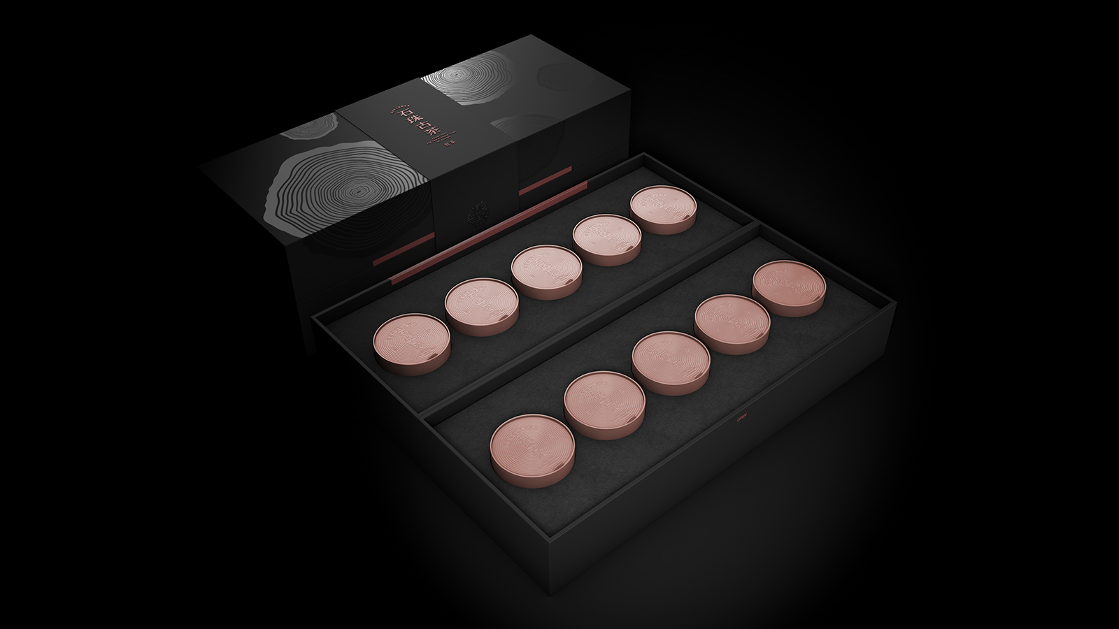 色彩是我們傳遞情感的重要語言,我們?yōu)槿畈枞~包裝分別選擇了古銅金、天然蘭、純凈銀。代表著茶葉的自然與健康,金色線條的搭配,讓整個包裝顯得高貴而典雅。古銅金則充滿了傳統(tǒng)文化的喜慶與高端品質(zhì),黑色線條的點(diǎn)綴,穩(wěn)重而不失大氣以其神秘和高雅,展現(xiàn)了茶葉的珍貴。圖案設(shè)計方面,我們從茶樹的生長等元素中汲取靈感,結(jié)合現(xiàn)代設(shè)計手法,創(chuàng)作出了獨(dú)具美感的年輪圖案。每一款包裝都有其獨(dú)特的年輪視覺符號,展現(xiàn)茶葉的優(yōu)美形態(tài)和歷史底蘊(yùn)充滿了藝術(shù)生命力。