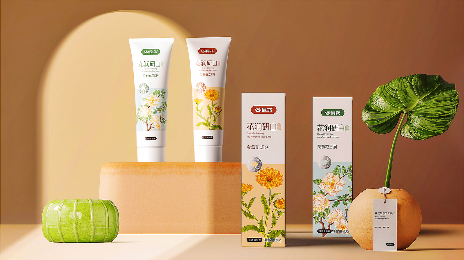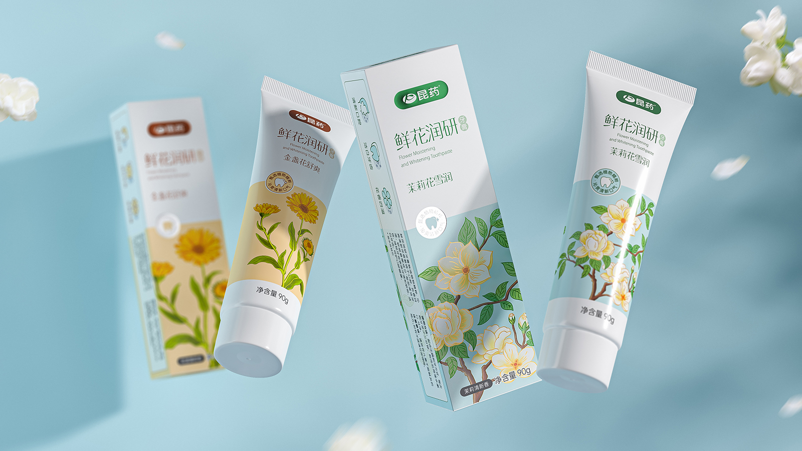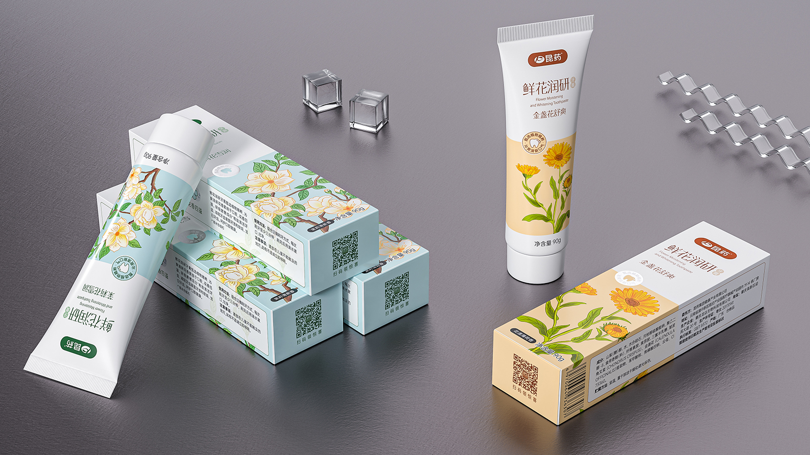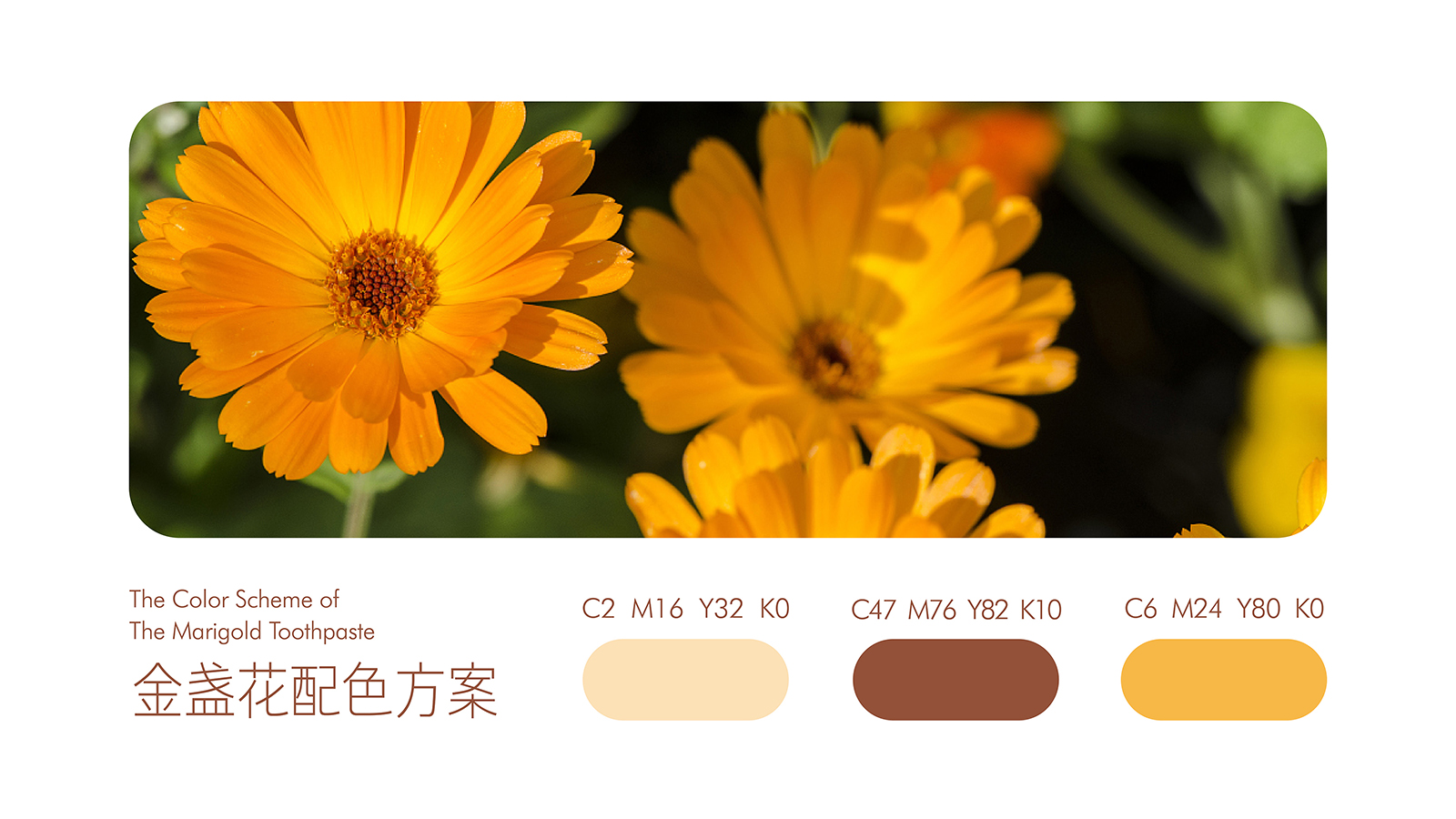 在文字排版上,兩款牙膏的包裝設計都注重信息的層次和易讀性。品牌名稱和產(chǎn)品系列名稱采用了較大的字體,以確保在不同距離下都能清晰可見。而產(chǎn)品的具體功效描述和凈含量等信息則采用了較小的字體,排列在包裝的下方或側邊,既保證了信息的完整性,又避免了視覺上的雜亂。茉莉花以其清新的香氣和美白效果而聞名,而金盞花則以其舒緩和修復的特性受到人們的喜愛。通過將這些元素直接呈現(xiàn)在包裝上,消費者可以一目了然地了解到產(chǎn)品的主要功效。通過簡潔現(xiàn)代的風格、清新自然的色彩、合理的文字排版和巧妙的元素融合,成功地塑造了產(chǎn)品的品牌形象,并為消費者帶來了愉悅的視覺享受提升產(chǎn)品的市場競爭力。