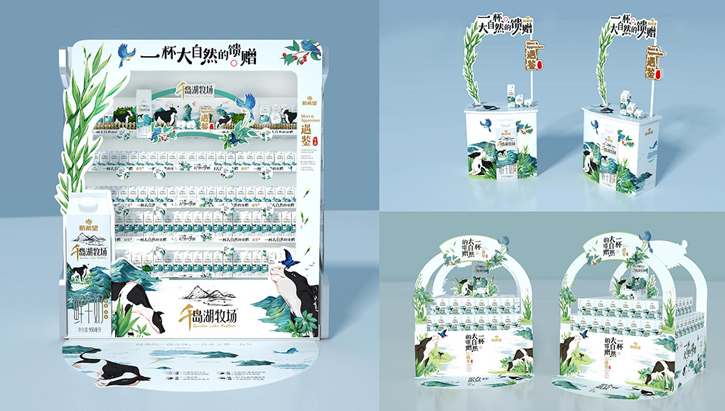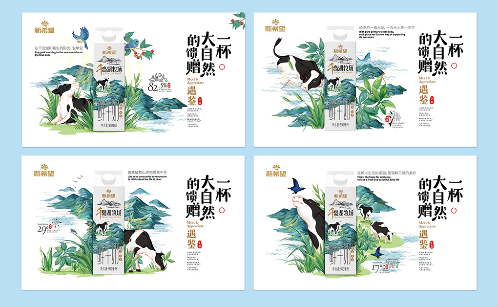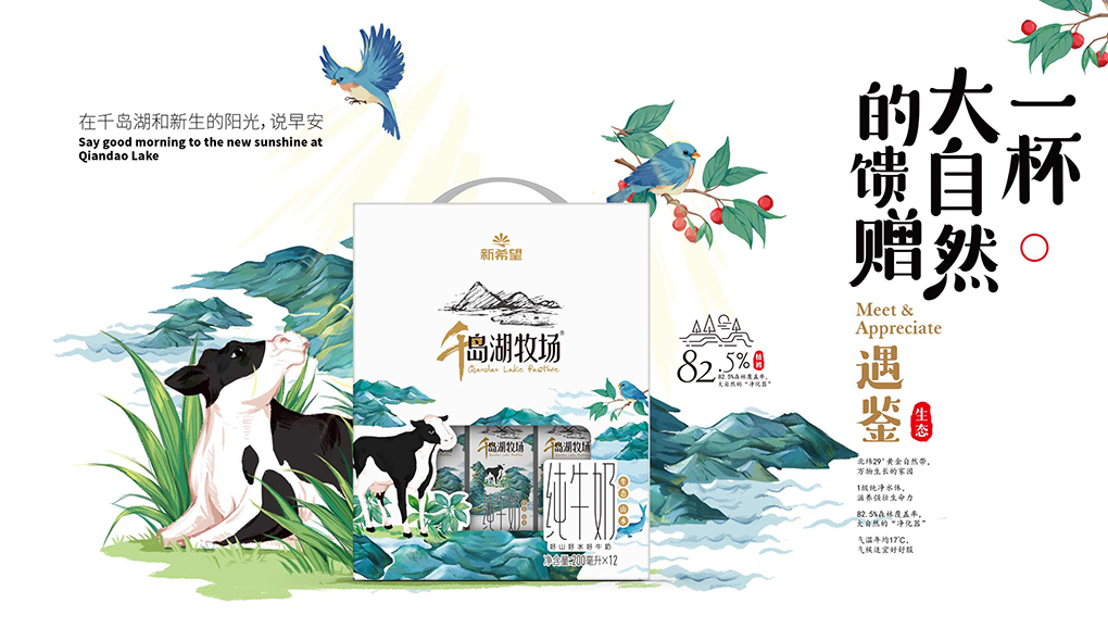 千島牧場(chǎng)的品牌產(chǎn)品包裝升級(jí)設(shè)計(jì),不僅要保持內(nèi)涵延續(xù),更要有新價(jià)值感的升華,從品牌、消費(fèi)、競(jìng)品三個(gè)緯度進(jìn)行研究,回歸產(chǎn)品和消費(fèi)的本質(zhì),用“自然生態(tài),青綠山水”千島湖牧場(chǎng)環(huán)境,呈現(xiàn)“一杯大自然的饋贈(zèng)”,每一口奶都是原初的本味。品牌升級(jí)采用生動(dòng)“插畫”的表現(xiàn)方式,從植被、水源、緯度、溫度角度立體呈現(xiàn)源于自然的新鮮好奶。