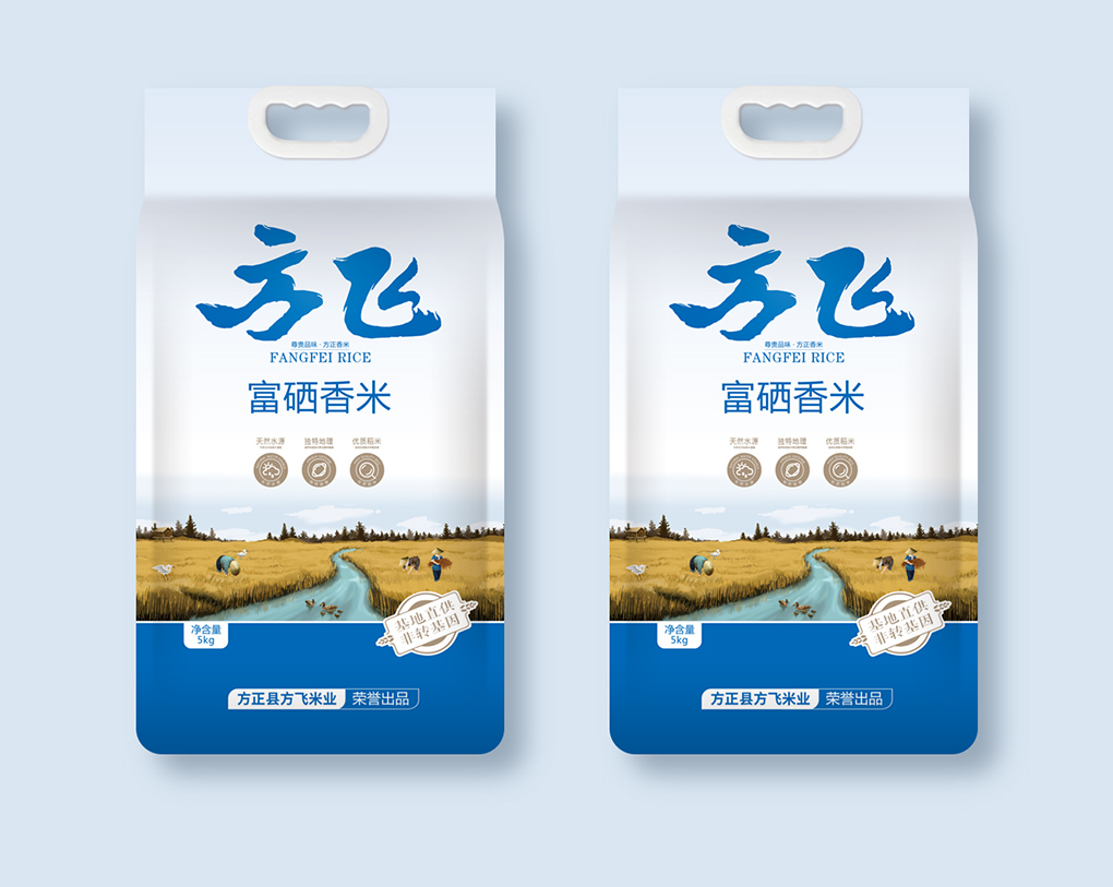 香大米包裝設(shè)計(jì)體現(xiàn)產(chǎn)品高附加價(jià)值,充分向消費(fèi)者展示文化底蘊(yùn)和獨(dú)特生長(zhǎng)環(huán)境,從而塑造清晰的品牌形象。
