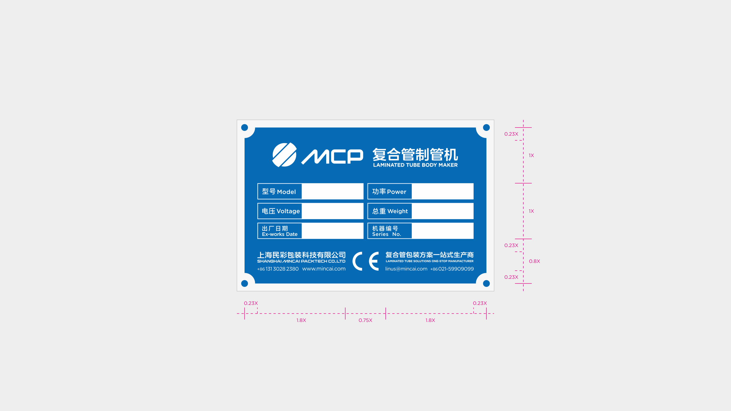 MCP民彩包裝品牌設(shè)計(jì),是從專注、高效、創(chuàng)新產(chǎn)業(yè)鏈為基礎(chǔ)。將包裝機(jī)械交流中的直徑符號(hào)作為象形展現(xiàn)所構(gòu)建的圖形類標(biāo)識(shí)。國(guó)際標(biāo)準(zhǔn)直徑符號(hào)通過與MCP事業(yè)的融合,演化為民彩獨(dú)特的視覺標(biāo)識(shí)。圖形呈現(xiàn)飽滿向上的勢(shì)能形態(tài),旨在強(qiáng)調(diào)企業(yè)的堅(jiān)韌和生生不息的創(chuàng)新精神。標(biāo)識(shí)完美的契合了凸版印刷、復(fù)合軟管屬性,表達(dá)了民彩包裝企業(yè)對(duì)全產(chǎn)業(yè)鏈的布局和發(fā)展愿景。完整的民彩包裝標(biāo)志分為:“圖形標(biāo)志”、“中英文標(biāo)準(zhǔn)字體”、“色彩”等。整體造型簡(jiǎn)約、清晰,嚴(yán)謹(jǐn)而專業(yè)穩(wěn)重,全面的塑造了一個(gè)可靠誠(chéng)信的復(fù)合軟管制造的現(xiàn)代企業(yè)的良好國(guó)際化形象,從而最大化彰顯企業(yè)競(jìng)爭(zhēng)力。