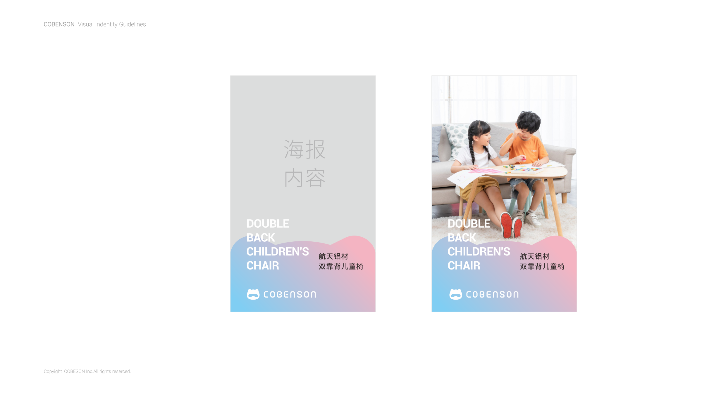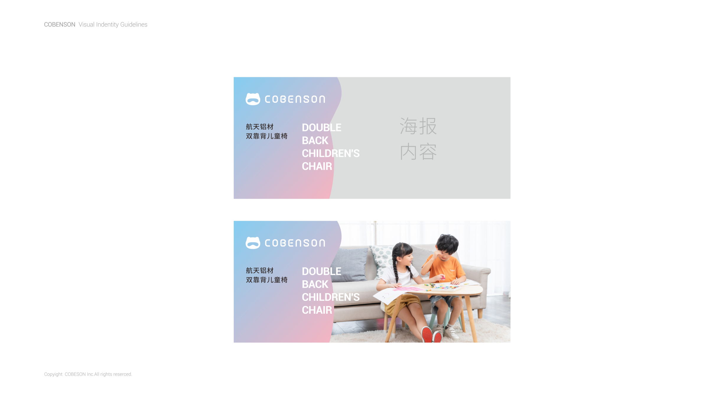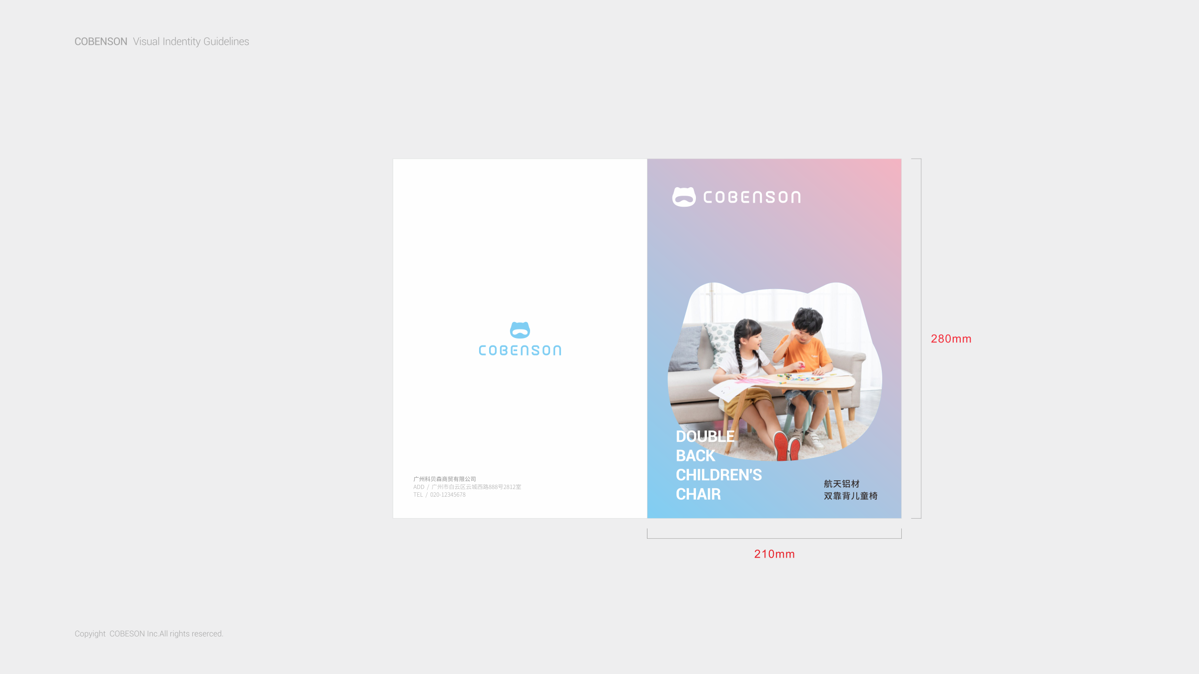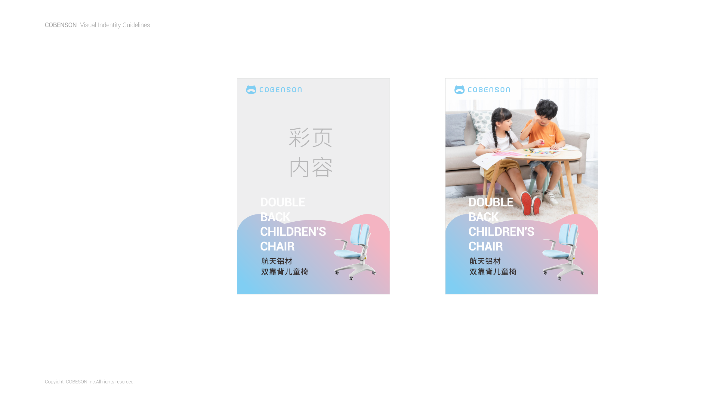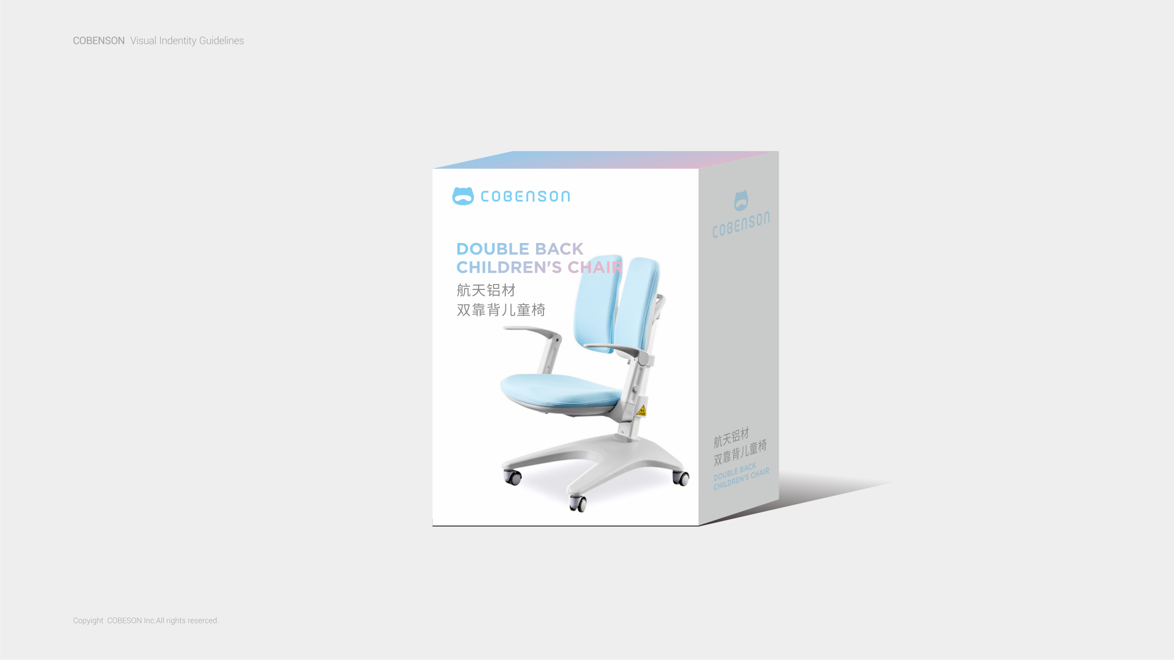 COBENSON科貝森標志設計,是由其品牌屬性所圍繞的兒童用戶群體為設計基礎。以科技與魔法貓相融的獨特形象,充分體現(xiàn)了年輕父母所關注產(chǎn)品的科學考量。同時兼顧了兒童對于萌寵的渴望與陪伴的想象。完整的COBENSON科貝森標識分為:“圖形標識”、“英文標識”和“中文標識”。整體造型簡約科技、風格輕潮。具有強烈的人格化個性與鮮活生命感。有利于品牌與用戶建立良好的互動,同時體現(xiàn)了品牌現(xiàn)代化的創(chuàng)新活力,溫暖而親切。使其更便于識別別和記憶,從而使品牌傳播最大化。
